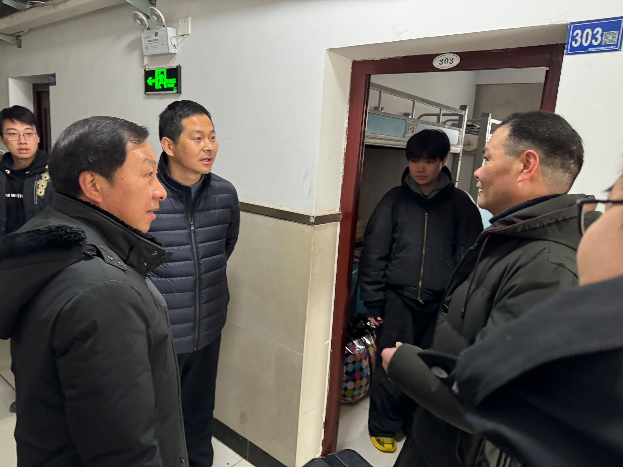 在6栋303寝室门口,正好碰到从广东清远送孩子返校的阮同学的父亲,王地国与其进行了简短交流,详细询问了其返校是否顺畅,近几天的生活物资筹备,以及对学院管理与服务的建议。家长表示,学校老师能在这一刻及时出现在学生身边,就是对学生最大的关怀与鼓励,并对学校细致入微的教育与服务表示感谢。