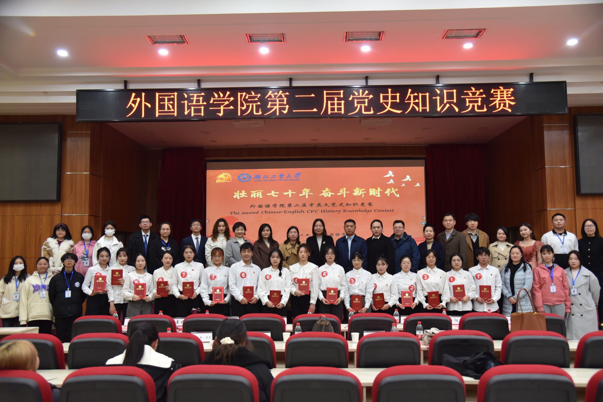 为丰富党校培训班学习形式,将专业知识与党史学习相结合,11月26日下午,外国语学院在博学堂举办第二届“学史明理启新程 百年风华正青春”中英文党史知识竞赛特色党建活动。外国语学院领导班子全体成员,教师党支部书记代表,学工办全体辅导员老师和第78期党课学员参加,活动由2020级英语1班周咏怡同学和2022级英语4班的陈浩然同学主持。