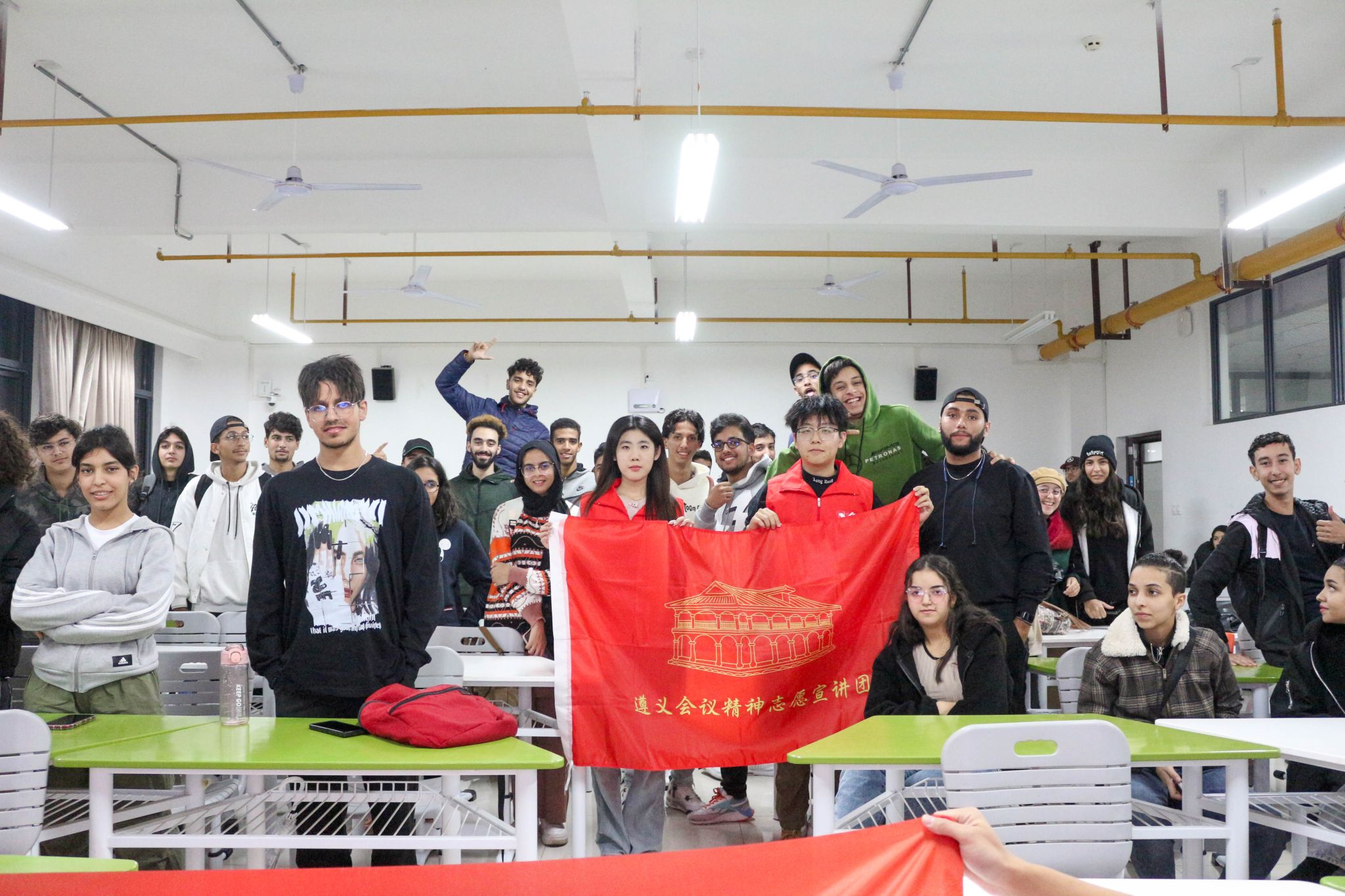 图为11月9日,绿益宣讲团向我校国际学生宣讲遵义精神