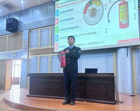 培训中,教官针对校园火灾特点,以消防“四个能力”为切入点,重点讲解了如何预防火灾的发生、如何使用灭火器、火灾发生初期应急处置方法、火场逃生注意事项以及应急救援技能等内容,教官扎实的理论功底和丰富的实践经验让参训师生收获满满。