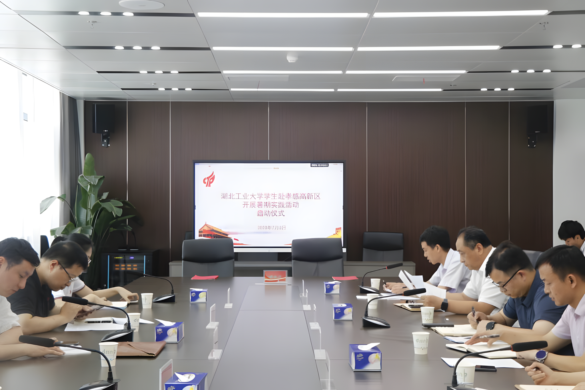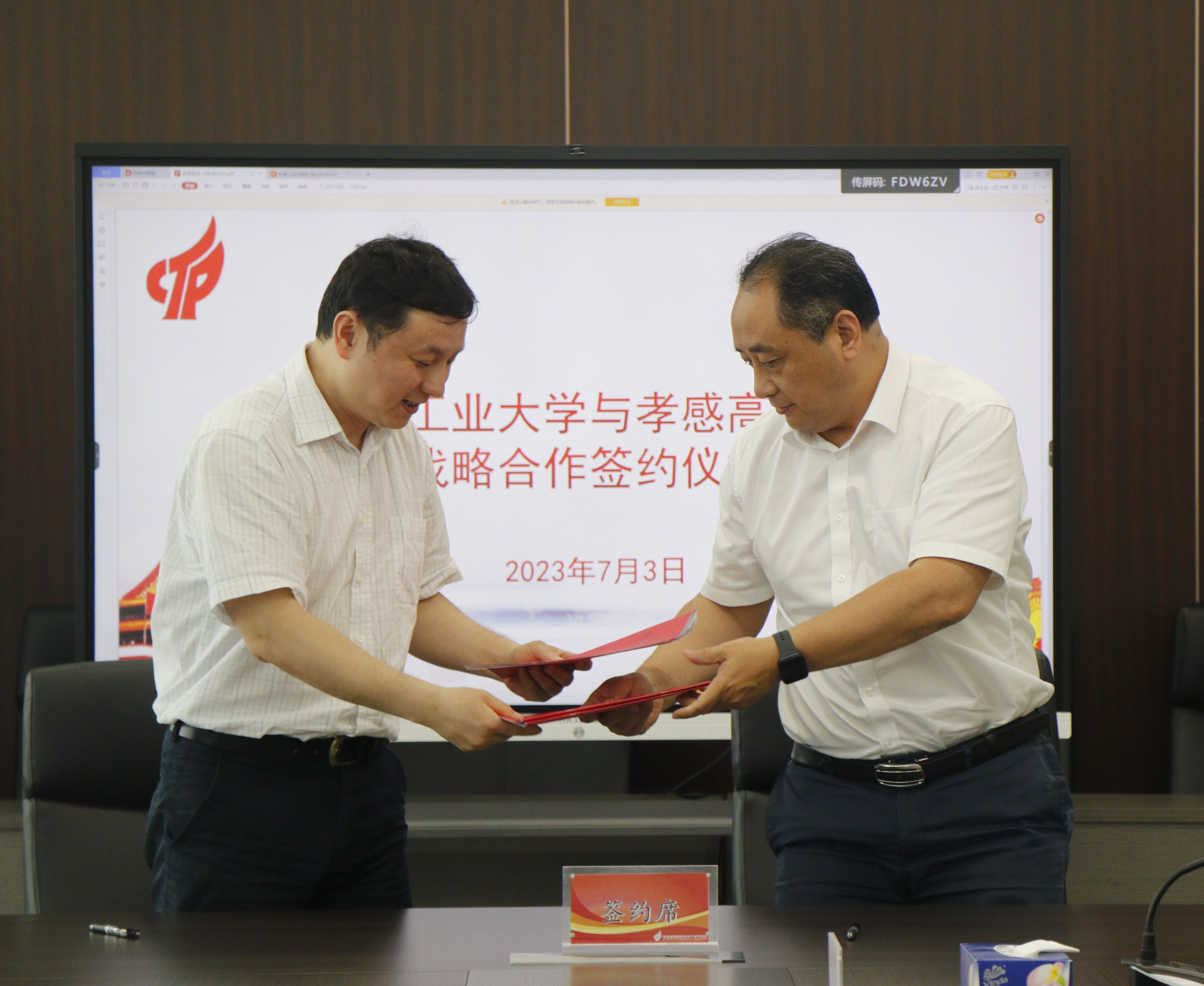 座谈会上,高新区科创局局长周亚锋全面介绍了高新区企业规模和产业发展状况。实践队学生代表周莹表达了走进企业、认识行业、跟岗锻炼的强烈愿望,以及扎实做好实践活动和各项工作的决心。机械学院党委副书记李亚丹结合学校宣传片《筑梦扬帆竞一流》介绍了学校的基本情况,以及学校产学研合作的相关做法和主要成果。副院长聂磊就机械学院人才培养、学科建设、科研工作、产教融合等进行了系统介绍,对双方进一步加强合作提出了具体举措。高新区管委会主任舒俊对学院师生的到来表示热烈欢迎,表示将全方位为实践队协调好跟班顶岗、企业调研、园区考察、科普讲堂、生活交通等各项保障,希望实践队能在有限的时间里认识孝感,了解孝感,爱上孝感;他十分感谢学校对高新区的信任,并表示我校学科专业与高新区企业需求和产业发展高度契合,合作潜力和空间非常广阔,希望在人才招聘、学历提升、联合人才培养、产学研合作、挂职锻炼、实习实践等方面不断密切校地、校企合作,携手突破大平台、大项目,大成果,不断吸引更多湖工大优秀毕业生到孝感就业创业。最后,双方正式签署了校地合作协议,为下一步合作共赢打下了坚实基础。