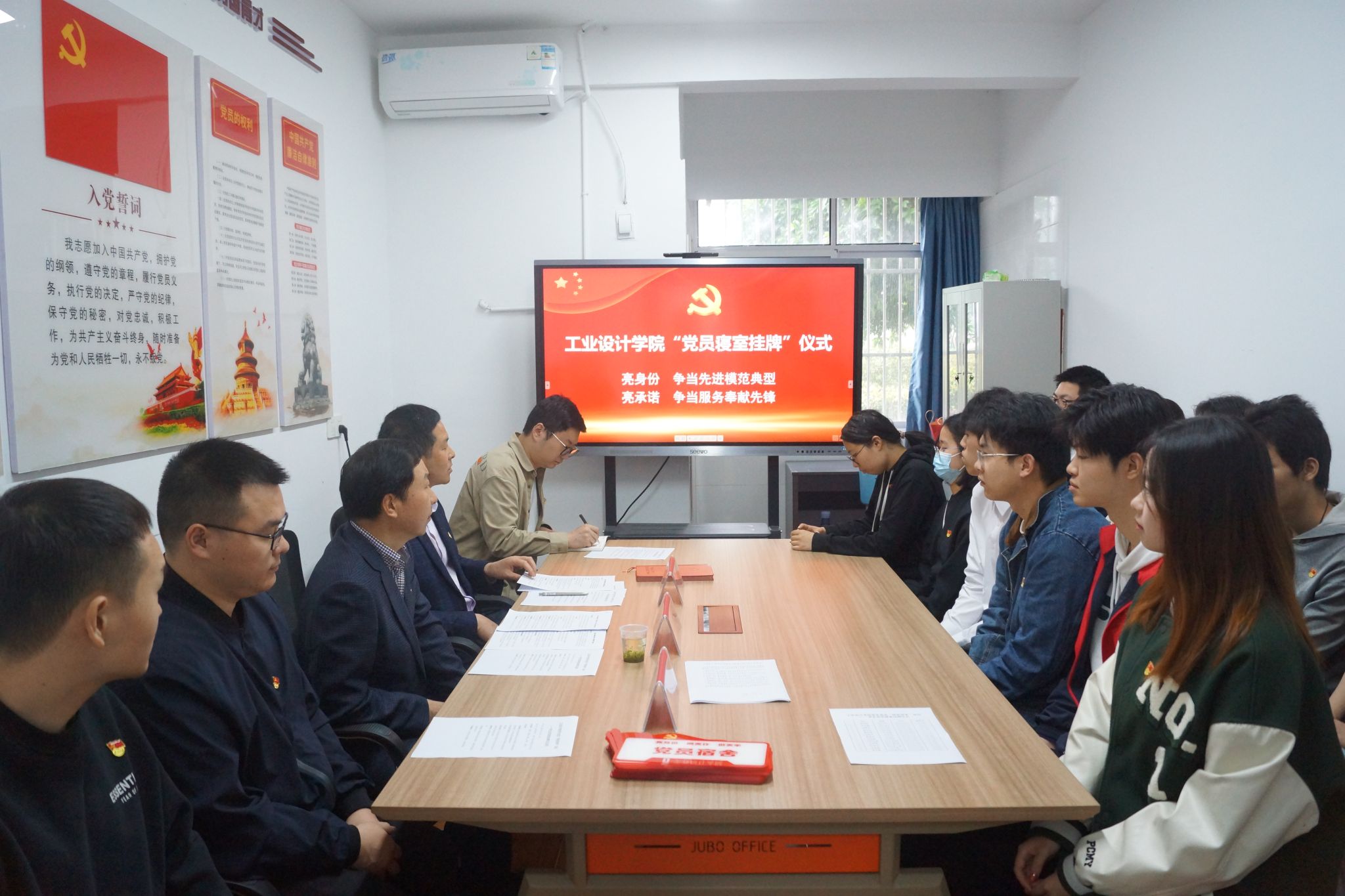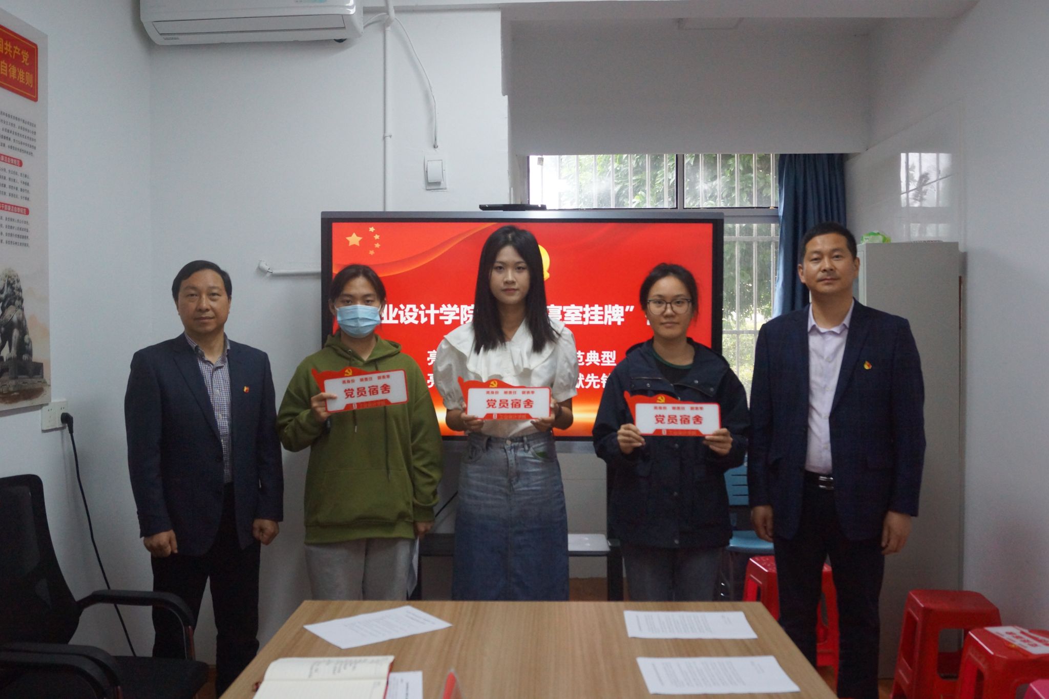 4月30日上午,工业设计学院在学生一站式社区开展“亮身份、明责任、做表率”学生党员寝室挂牌仪式。院党委书记王地国、副书记侯国强、全体学生党支部书记以及各学生支部党员代表参加挂牌活动。
