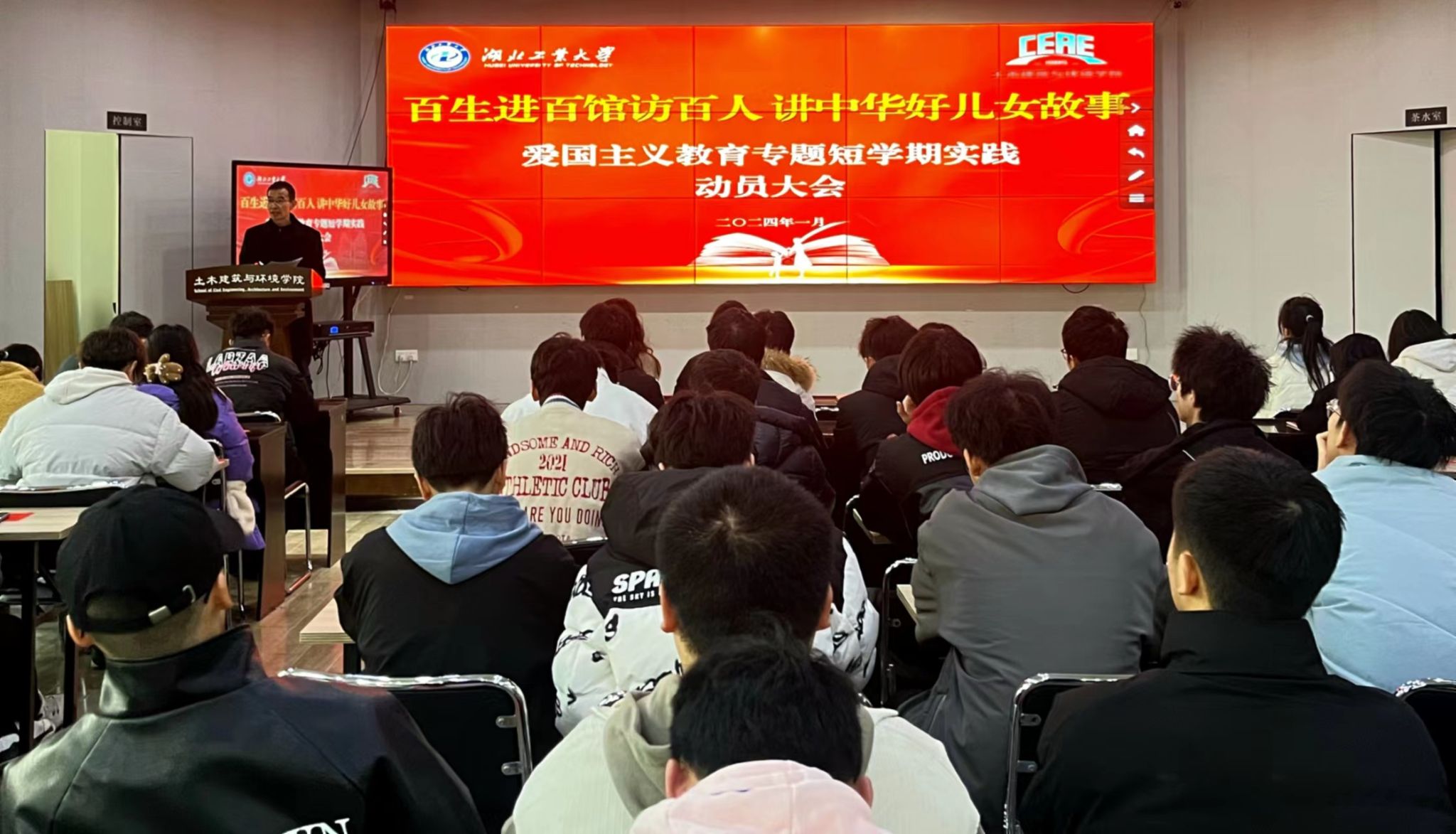 1月4日上午,土木建筑与环境学院在土建楼报告厅举行“百生进百馆访百人,讲中华好儿女故事”爱国主义教育专题短学期实践动员会。学院党委副书记周利涛、项目指导教师以及报名参加爱国主义教育专题短学期实践的所有学生参加了动员会。