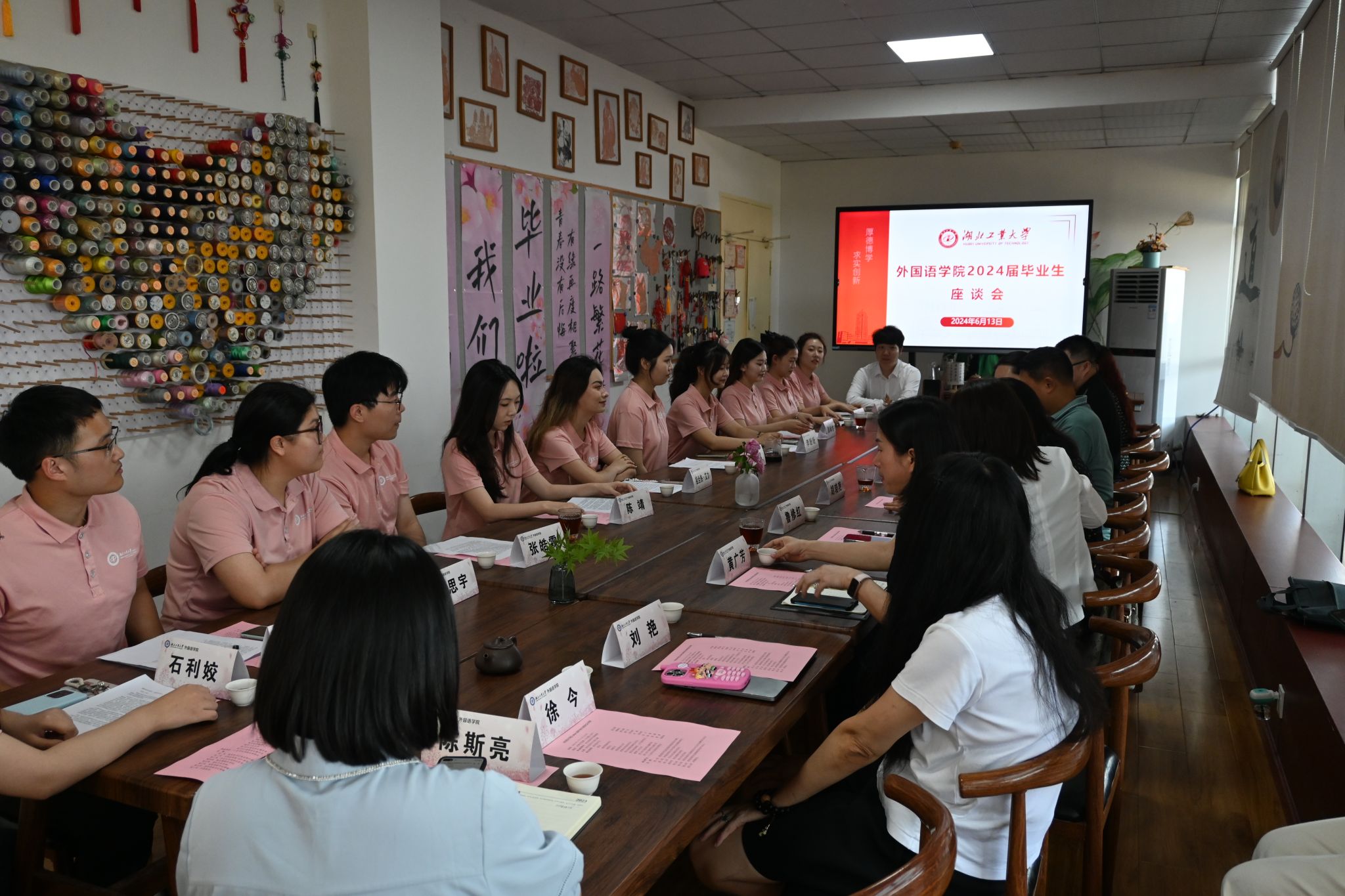 6月13日下午,外国语学院在中华才艺馆召开2024届毕业生座谈会,校党委副书记胡晓艳出席座谈会。外国语学院领导班子、各系部负责人、班导师代表、辅导员及本硕毕业生代表参加了座谈。座谈会由学院党委副书记胡文敏主持会议。