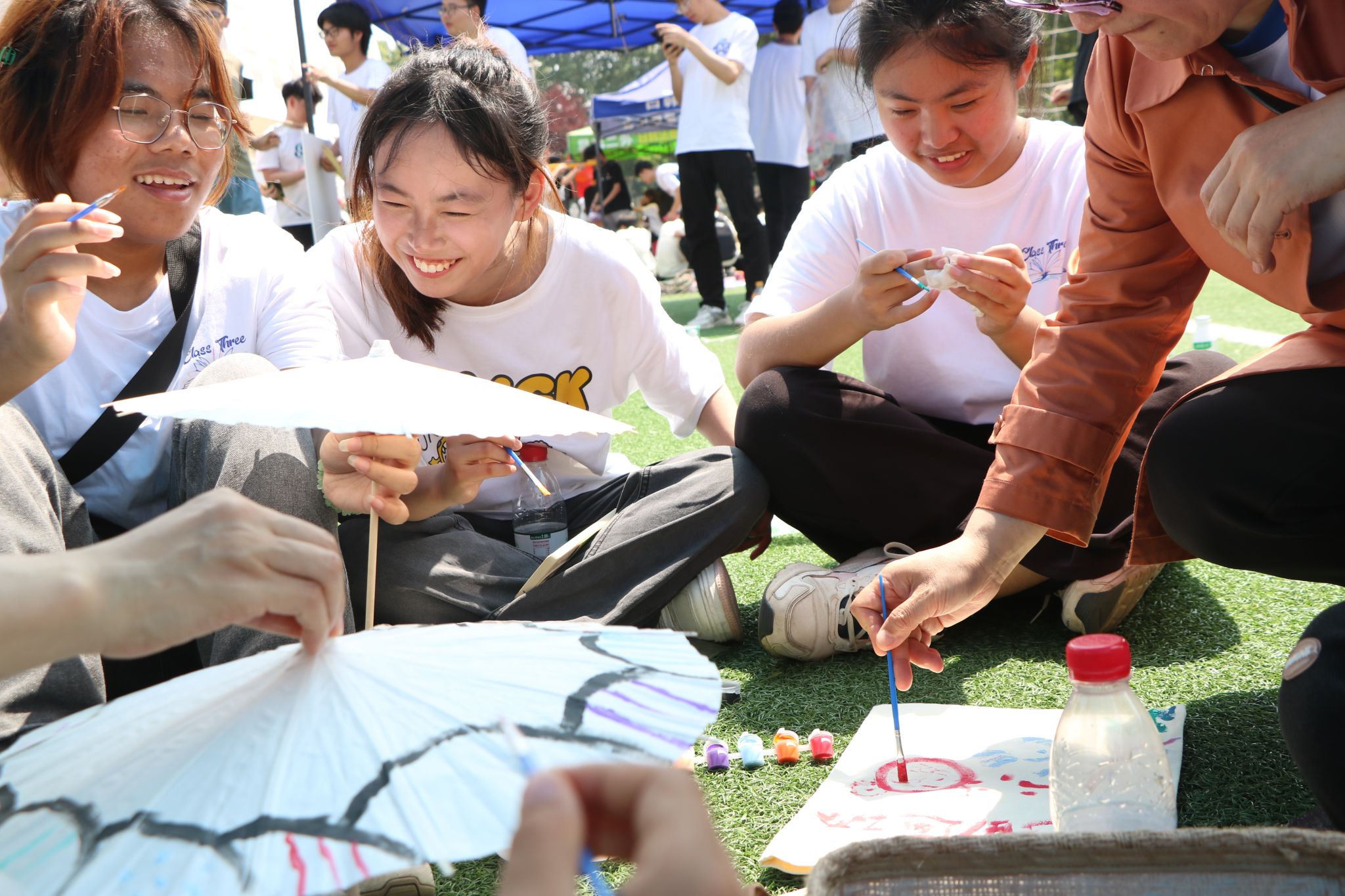 4月25日,在学院运动会上,举办了“探寻生活美好·闯出心天地”专场闯关活动。在场师生以团队的形式参与有奖问答、默契考验、共创美好DIY手工等环节,培养学生团队合作意识的同时,帮助学院师生释放压力、感受当下、体验成长。