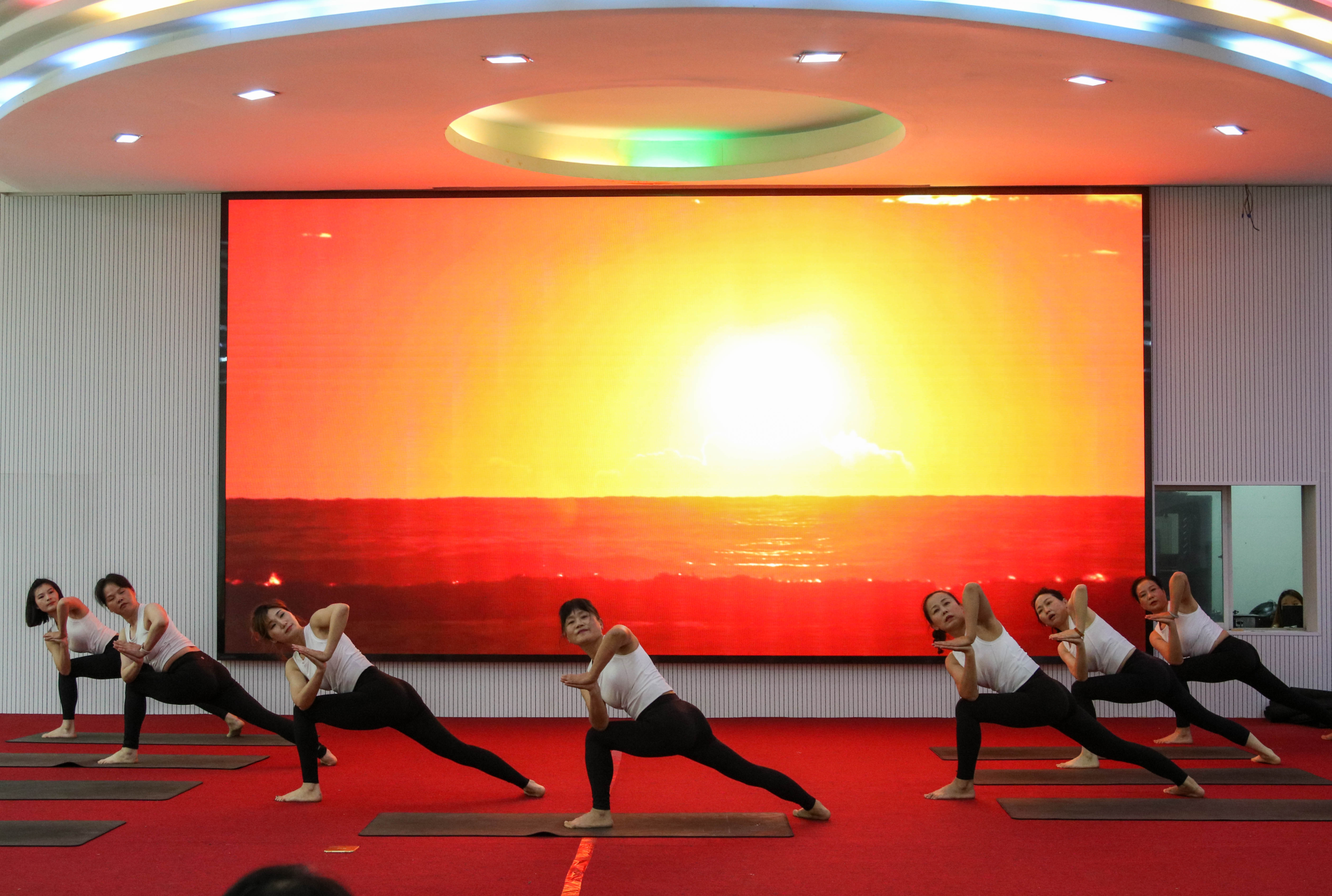 随着音乐的响起,参赛选手们身着统一的瑜伽服,精神饱满地开始展示各自的瑜伽体式。
