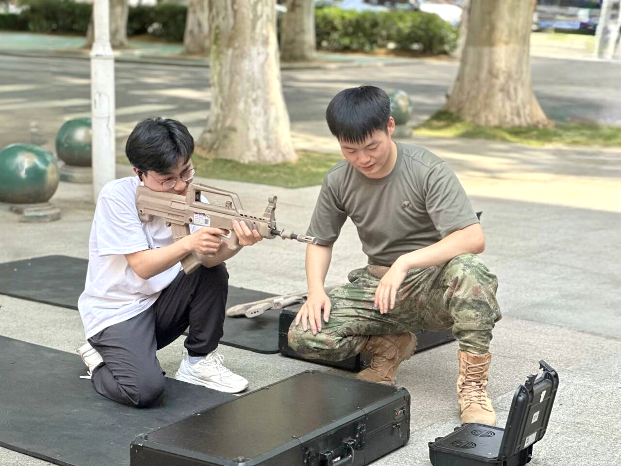 为了积极响应国家号召,让更多同学有机会深入了解大学生入伍政策,此次运动会特别在征兵工作站设立了一个趣味打卡点——模拟射击体验。打卡点上,三位来自生命学院的退伍大学生热情地为大家普及相关政策,并引导大家参与活动。