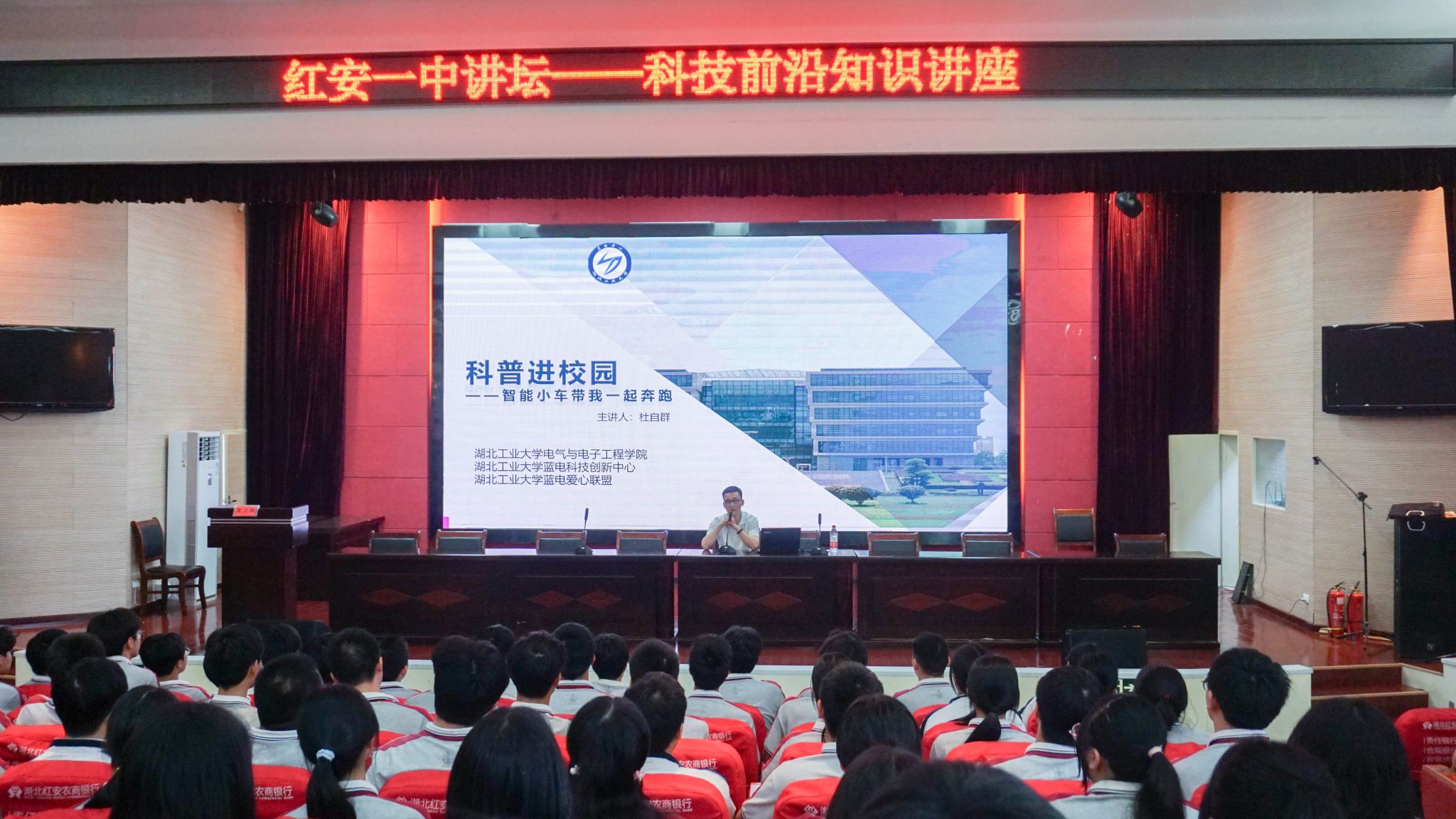 5月25日,湖北工业大学电气与电子工程学院大学生宣讲团来到红安一中,进行科技讲堂和红色精神宣讲。湖北工业大学党委副书记、校长冯征,校党委副书记胡晓艳出席活动。