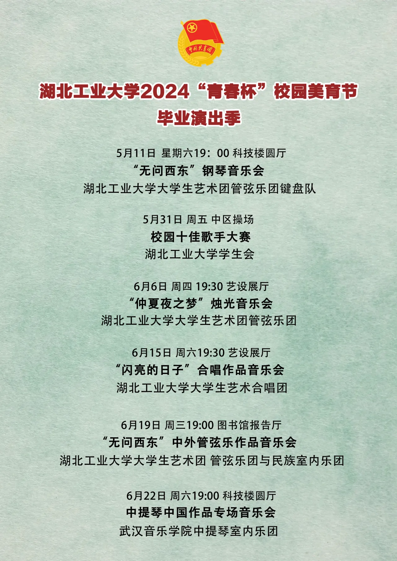 6月15日正值学校设计艺术节和毕业季,合唱团放歌艺设展厅,用《菊花台》《再回首》《喜鹊登枝》《城南送别》等经典曲目唱响“闪亮的日子”,为毕业生送去母校的祝福。其改编的湖工大版《我喜欢》还引发全场共鸣。