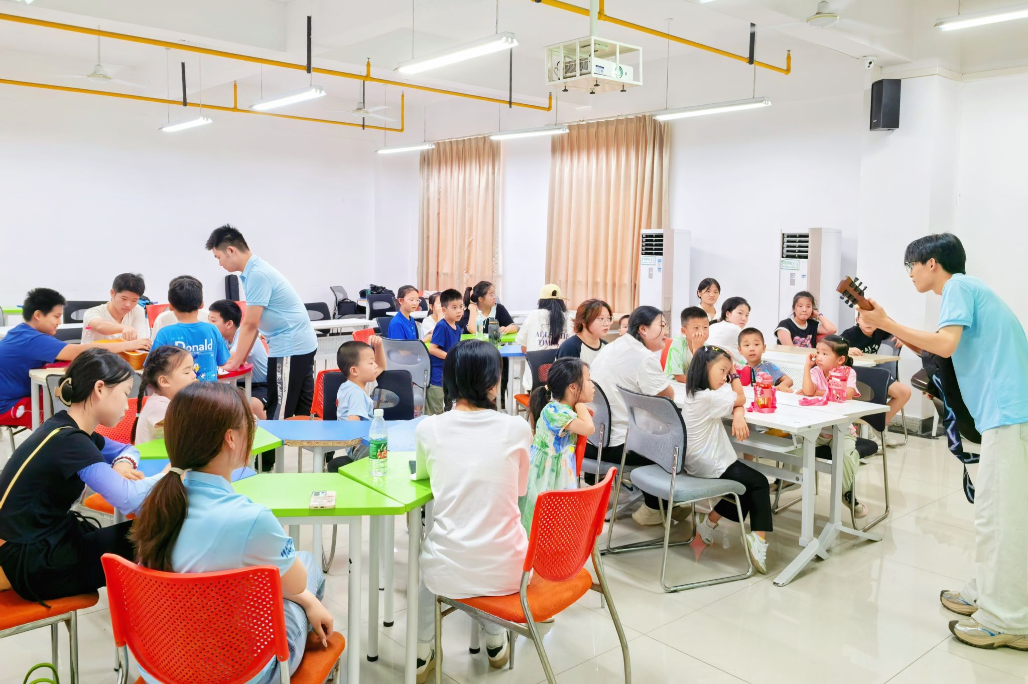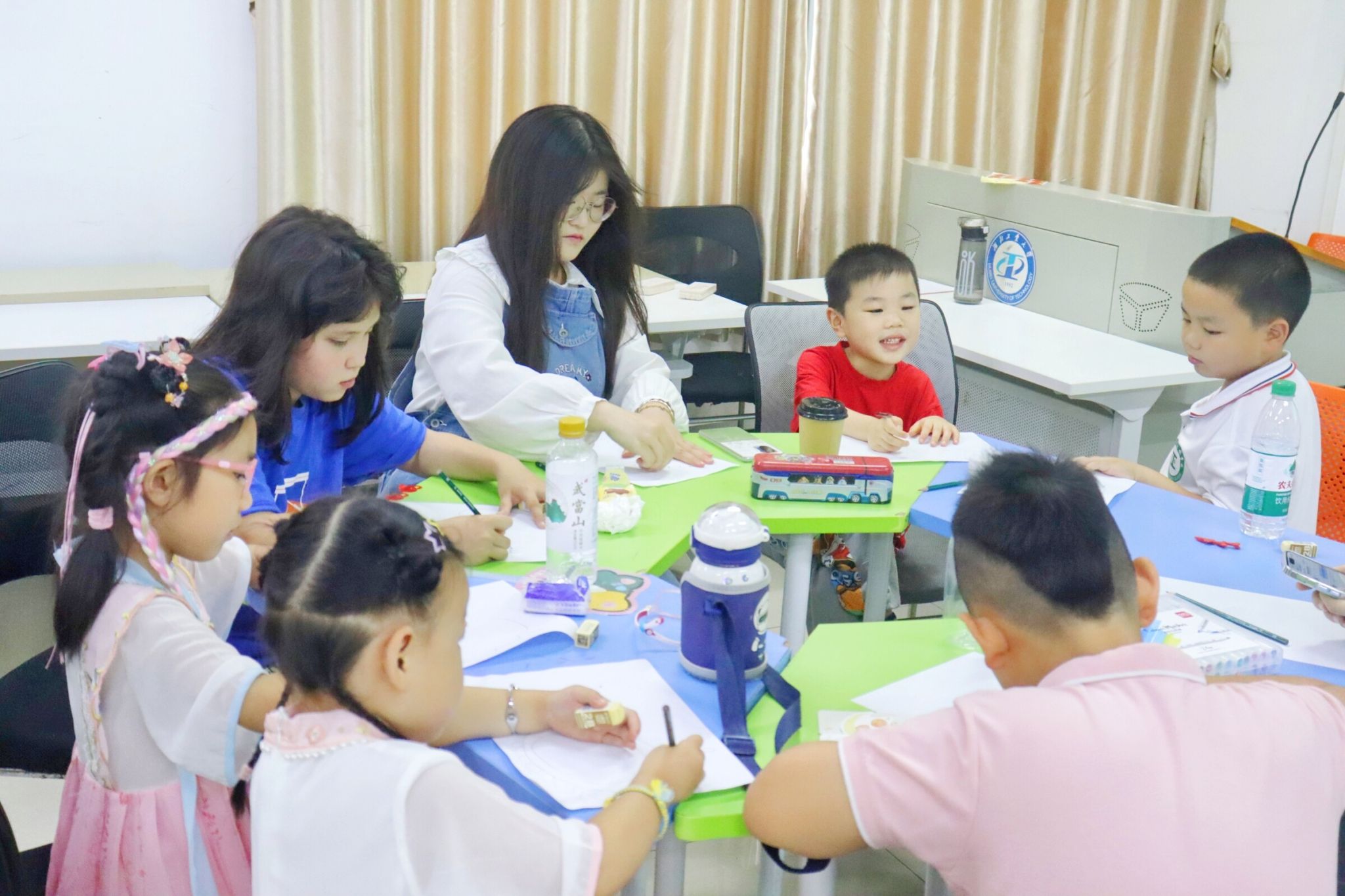 由湖北工业大学职业技术师范学院青教赛获奖教师、校园十佳歌手冠军、曾获省级优秀社会实践团队的“炬才”服务队大学生志愿者等师生代表组成的托管团队,陪小朋友们过暑假,为他们带来了“乐动心声”音乐课堂、“神笔马良”绘画课堂、“中国结·剪纸制作”传统文化课堂以及“情景剧本秀”品格塑造课堂,并引导小朋友们讲述自己的作品创意、心得体会,以此锻炼口才。