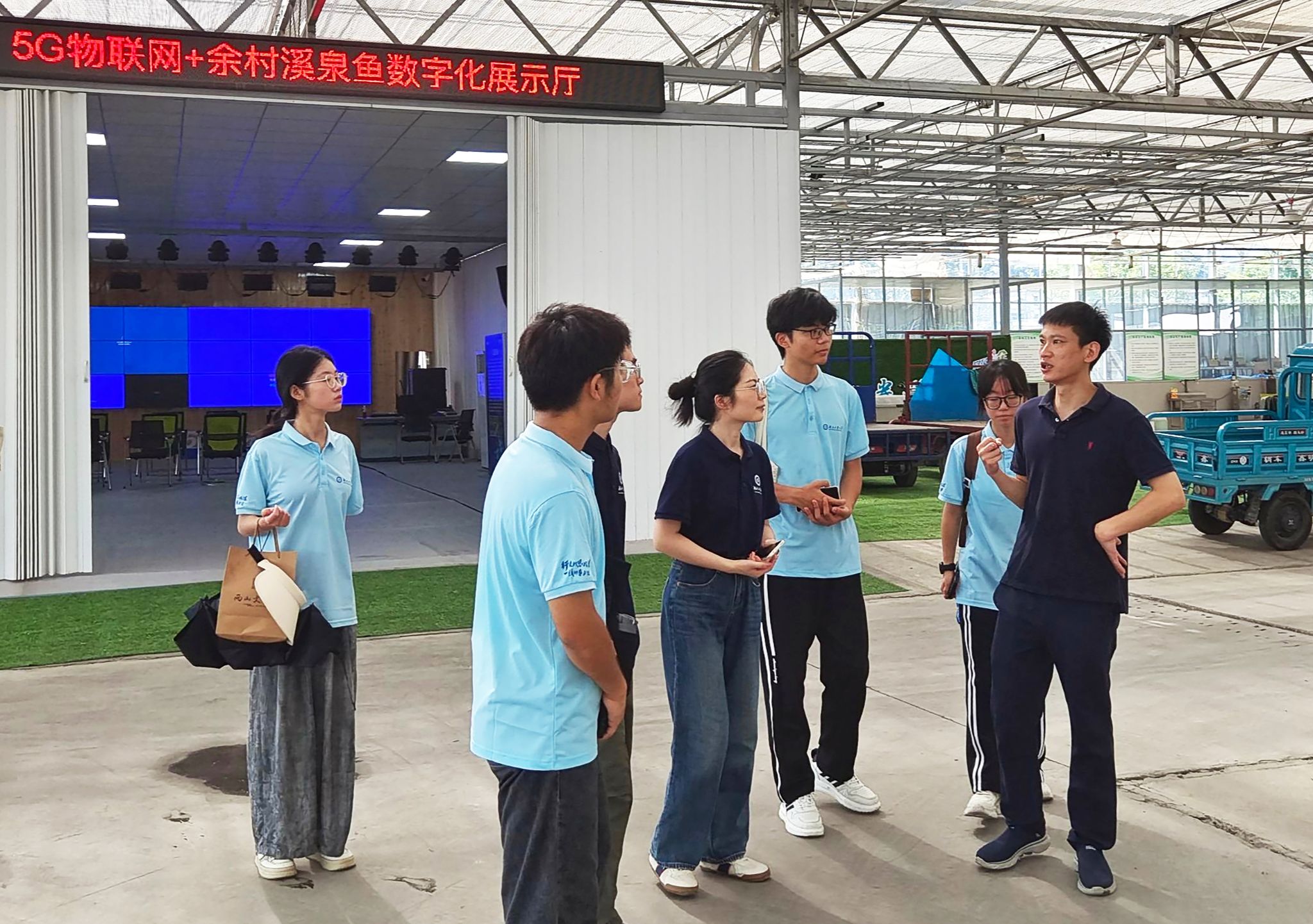 实践队先后来到余村竹生态产业园、“5G物联网+溪泉鱼”基地,学习当地农旅结合、智慧农业发展的鲜活经验。“5G物联网+溪泉鱼”项目负责人潘经理为实践团队详细介绍了当地利用数字化技术赋能乡村振兴的具体实践,实践队员结合自身专业与其交流了智能养殖监测设备的技术原理等。
