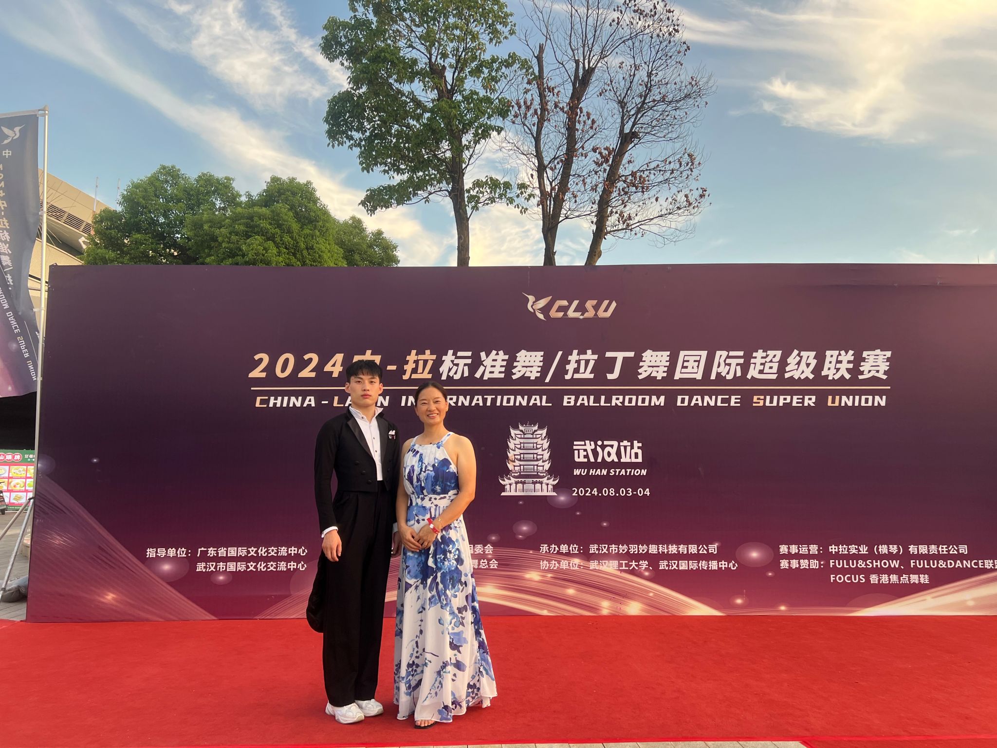 2024CLSU中-拉标准舞/拉丁舞国际超级联赛(武汉站)于8月3日在武汉市五环体育中心落下帷幕。我校生命科学与健康工程学院2022级生物与医药专业的赵子庆同学在高校单人A组标准舞和高校单人B组标准舞两个项目中均斩获冠军。