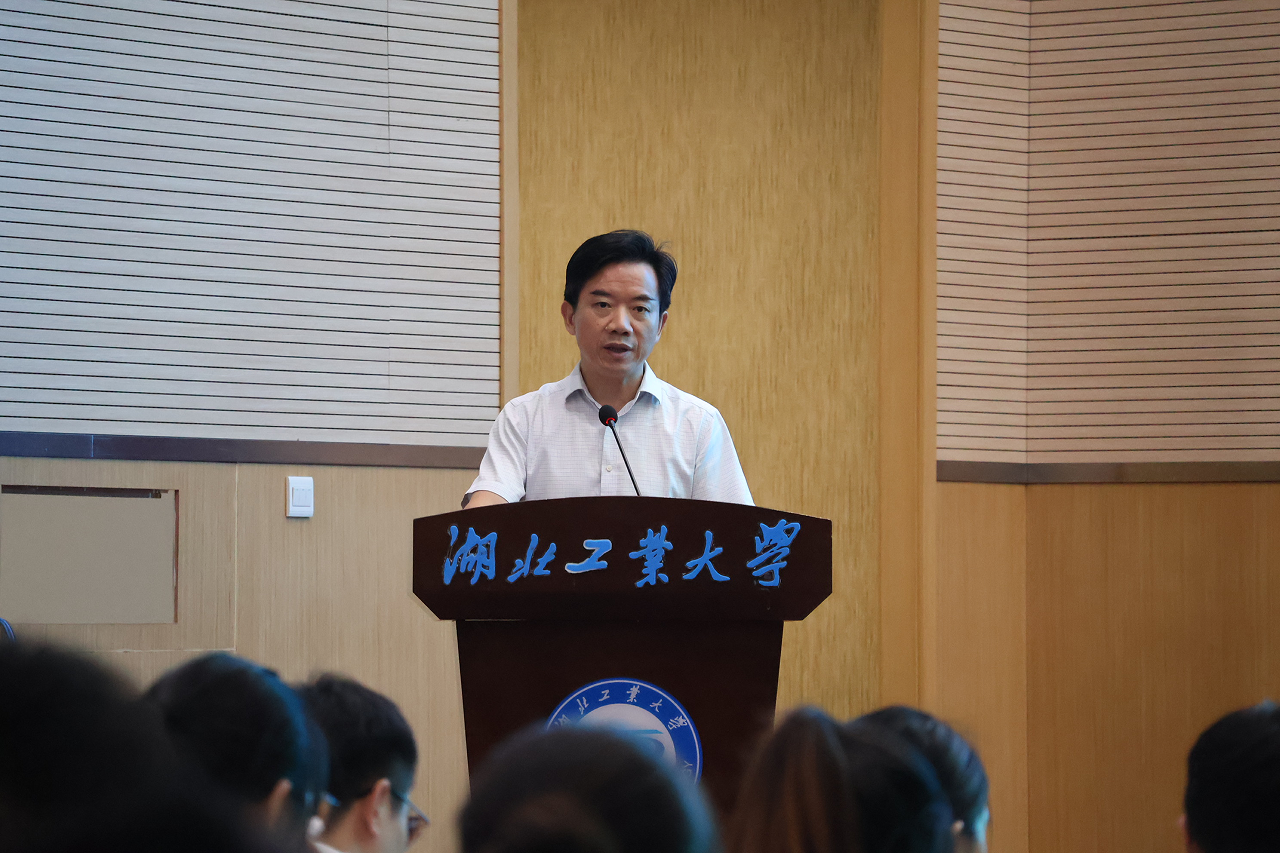 宋小春为新生寄语。他介绍了湖北工业大学的基本校情,并告诉大家青年是国家事业的继承者和建设者,是民族和国家的未来与希望,肩负着实现民族复兴的伟大历史使命。广大青年应该勇担时代使命,贡献青春力量。对新同学即将开始的学习生涯,他提出三点希望:一是厚植家国情怀、树立远大志向;二是夯实理论基础、推动创新实践;三是保持韧性定力、勇于面对挑战。他勉励同学们要发扬“厚德博学、求实创新”的校训精神,以攻读硕士研究生作为新的起点,在新的赛道上不畏艰难,奋发有为,学有所成。