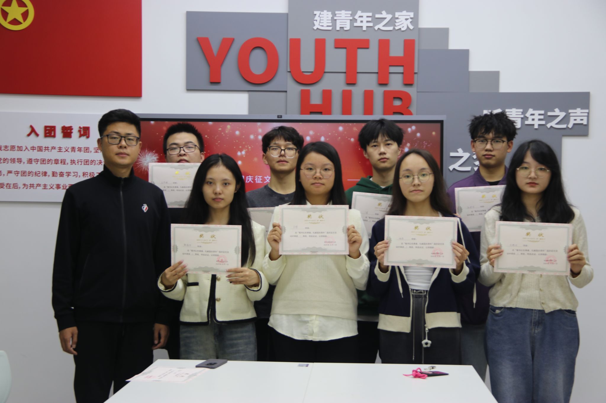 7日,党支部举办“我和我的祖国”主题征文活动颁奖仪式,9名同学分别获得一、二、三等奖。一等奖获得者、2024级本科生吴想表示:“在撰写文章的过程中,曾祖父、祖父、父亲、母亲在各自不同的工作岗位上那种一脉相传的爱国爱党情怀深深感染也教育着我。这种‘红色’家风让我意识到,‘爱国’不仅仅是一句口号,更是一份深入骨髓的行动和付出!”他还说,希望作品可以启发自己和身边的同学们,善于发现生活中那些看似寻常却炽热的“红色”瞬间。