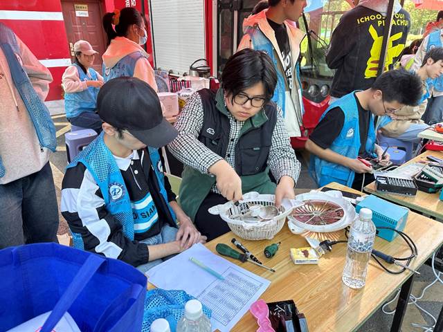 25日,学生义务维修队一早来到湖工社区布置场地、安置电线、器材等设备,做好相关准备工作。志愿服务队有序登记和检查居民们从家里带来的故障家电,在同学的团结协作之下,一台又一台损坏的电器重获新生。一位送来故障电风扇的居民说:“之前也来这里维修过其他电器,孩子们都很热情,也很有礼貌,维修的时候非常认真,每次的义务维修给我们带来了很大的便利。”本次义务维修活动共修缮热水壶、电饭煲、风扇等各式家电80余件。