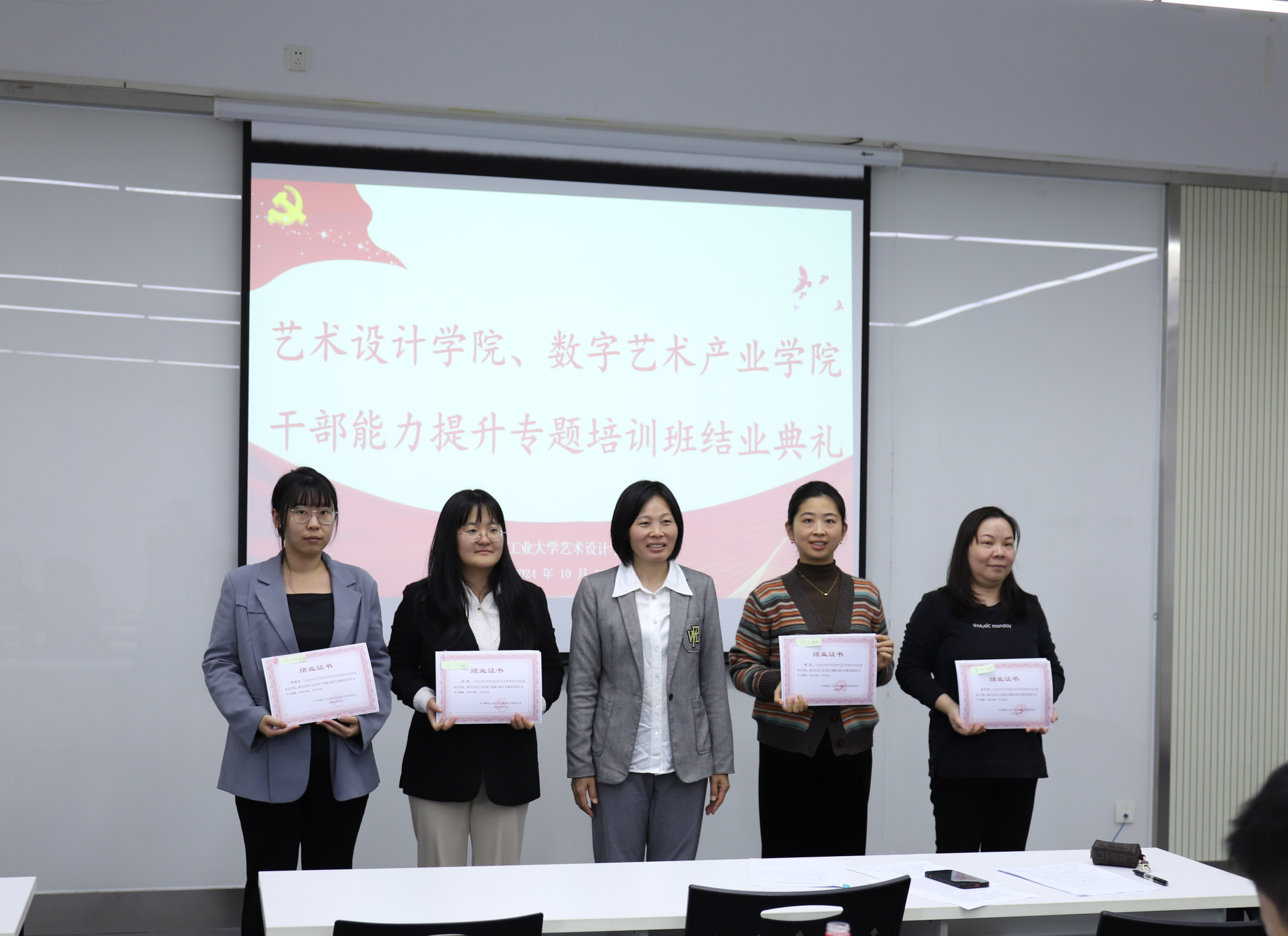 10月31日上午,艺术设计学院干部能力提升专题培训班结业式暨工作交流会在艺术楼C-311举行。本次培训历时半年,49名学员通过邀请校领导和职能部门专家集中授课、红旗渠主题实践教育、企业或兄弟院校调研、解放思想大讨论、撰写思考学院发展报告等环节的培训,顺利结业。