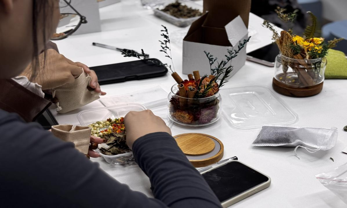 活动现场,同学们发挥自己的想象力进行创作:不同的香料组合,散发出沁人心脾、舒缓安神的味道;不同的干花组合造就独特的香薰作品,集美观与实用于一体;贺卡上真挚的文字,寄托着同学们对学长学姐最好的鼓励。