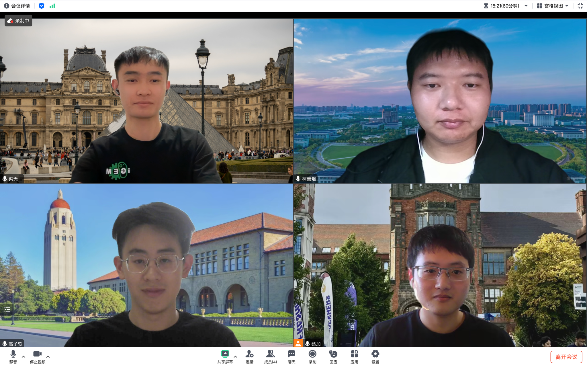 “各位学弟学妹好,我是柯善焜,现在是北京时间下午四点,我在东南大学学生宿舍”“我是梁天一,我在中国光谷向大家问好”“我是蔡佳,现在是英国早上七点,很高兴为大家提供咨询”“我是高子轶,现在是美国西部时间凌晨,我在斯坦福大学向大家问好”。