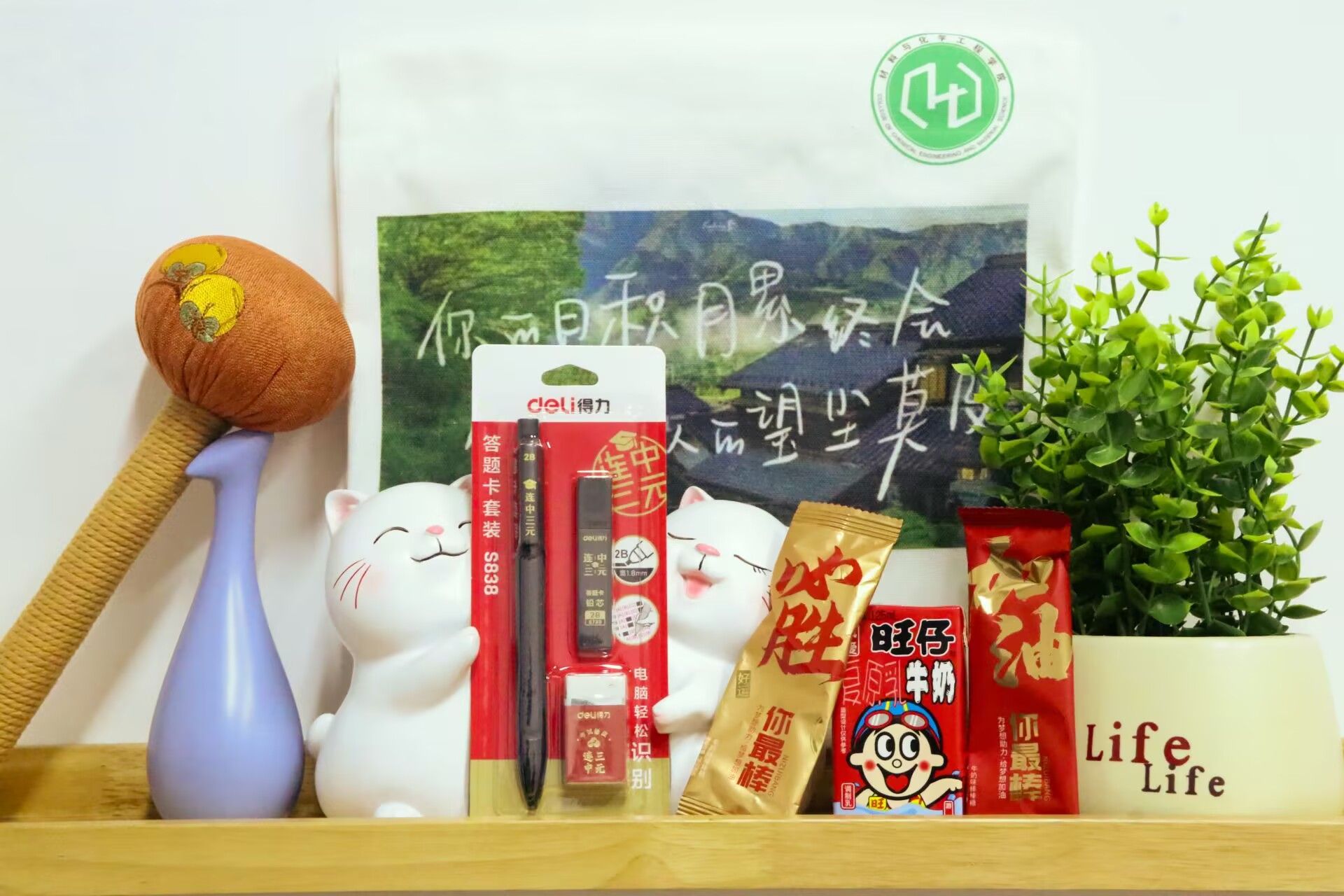 会后,学院领导、老师为同学们送上“考研暖心福袋”,并在福袋上亲笔书写下各自的祝福。今年福袋精心准备了兼具实用性和美好心意的物品,包含“柿柿如意”养生艾草锤、“好运连连”随身签、“一旺到底”旺仔牛奶、“属你最棒”棒棒糖、“一笔成硕”文具套装以及“一帆风顺”帆布袋,表达了对考研学生的美好祝愿。