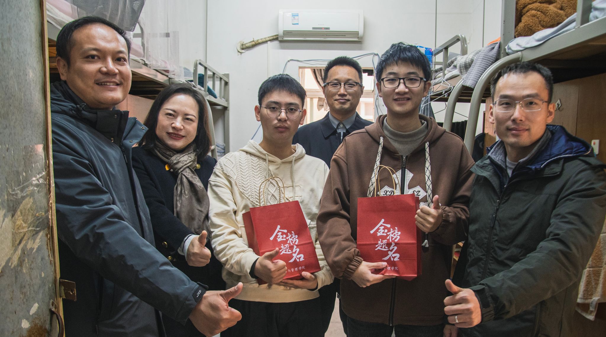 随后,余贞、张冀新、熊伟、王利军深入考研学生寝室进行慰问走访,全面了解大家的备考情况和生活需求,为大家支招解惑、加油鼓劲。
