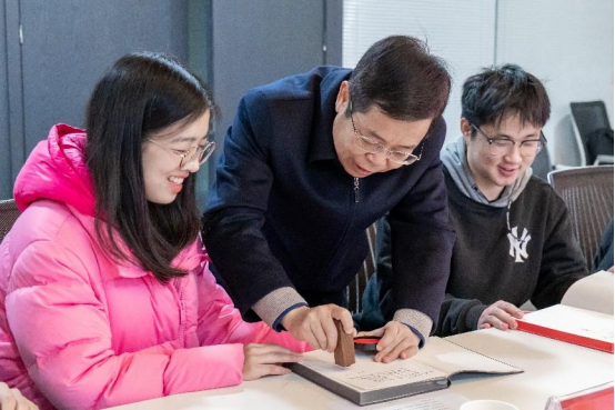 随后,陈自才和学院领导班子一起为考研学生代表赠送承载领导老师们浓浓情谊、美好祝愿的暖心礼物,一份写满鼓励的专属定制笔记本,陈自才现场为大家加盖寓意成功“上岸”的纪念章,预祝大家一战成硕、金榜题名、心想事成。