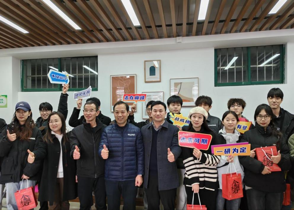 现场,学院各位领导和老师给学生们送上自己亲手书写的专属祝福明信片,并将寓意心想事“橙”、金“棒”题名、神来气“旺”、连中三元、蒸蒸日上等美好祝愿的暖心大礼包交到学生手中。学院“一站式”学生社区将陆续把各班导师和辅导员亲手写好的明信片和大礼包逐一送给考研学子,让考研学子在追梦途中有温暖相伴。