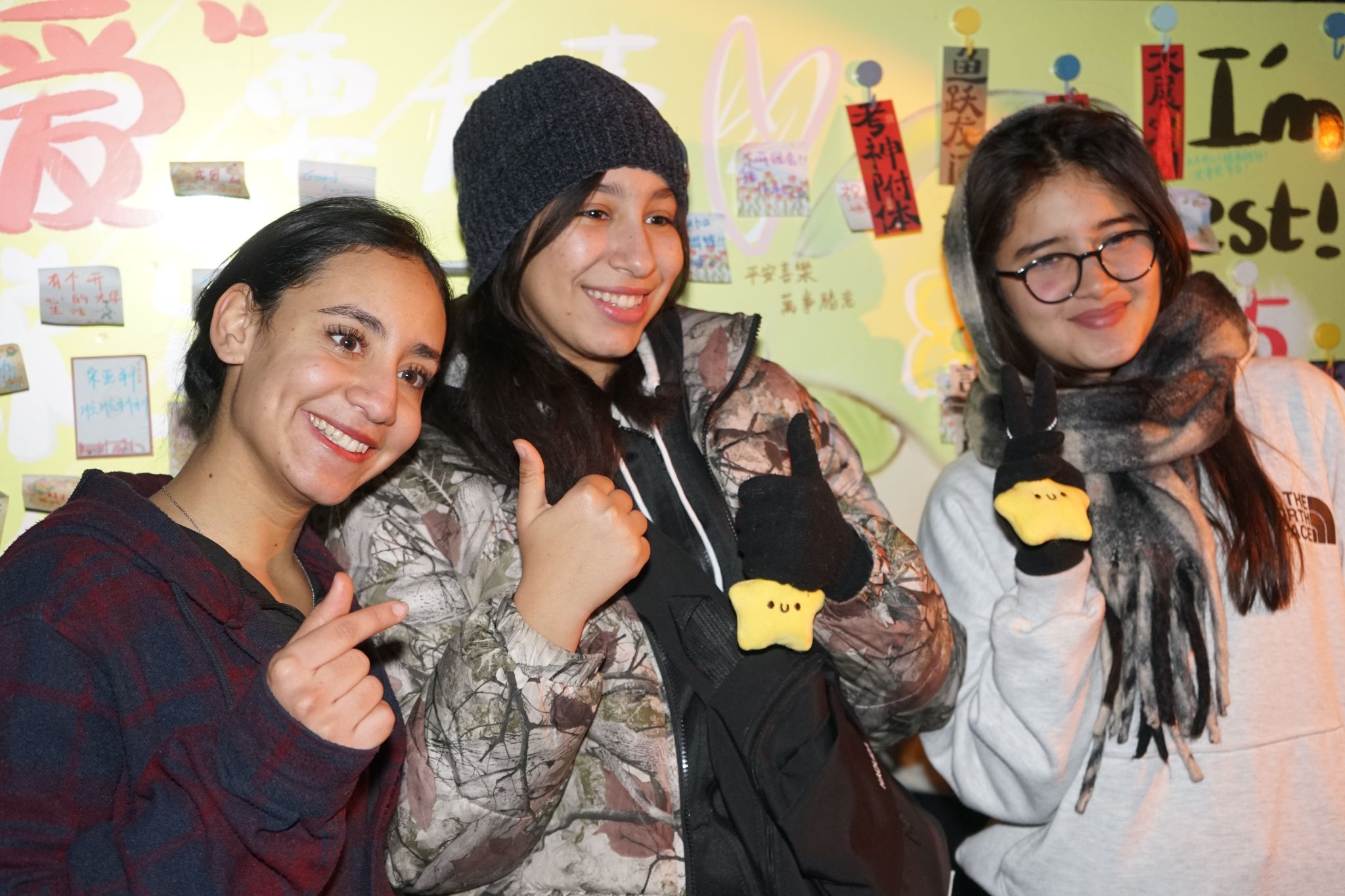 活动在北17栋率先温馨启动,现场一只活泼可爱的小熊玩偶迅速成为焦点,它作为活动的快乐使者,与学生们亲切握手、温馨拥抱,并送上内含暖贴的小礼盒这一惊喜礼物。同时,院心理卡通形象大使小糯米的主题展板成为学生们的打卡圣地,他们挑选小星星挂件、写下心愿与祝福并贴在KT板上。次日,活动热度不减,小熊玩偶在北15栋再次亮相,伴着悠扬音乐起舞,继续传递温暖与欢乐。它向自习晚归回来的学生们分发甜蜜糖果,寓意考研路上的甜蜜与成功,一旁的工作人员也积极送上祝福,让学生们深切感受到无微不至的关怀与支持。此外,活动现场还设有独出心裁的签名墙和氛围灯,如此温暖的场面吸引了众多学生参与。