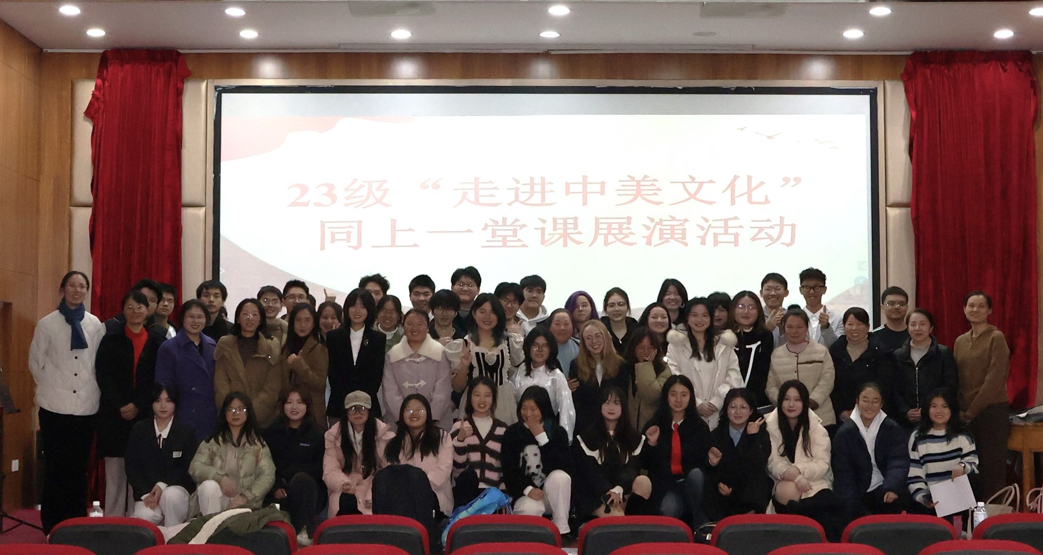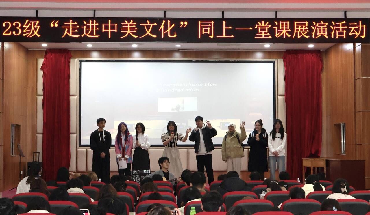 12月16日,大学英语拓展课“走进中美文化”同上一堂课展演活动在博学堂顺利举行。外国语学院2023级文化班的同学们齐聚一堂,共同沉浸在欢笑与音乐的海洋中,用英语讲述文化,展现课程的创新风采。