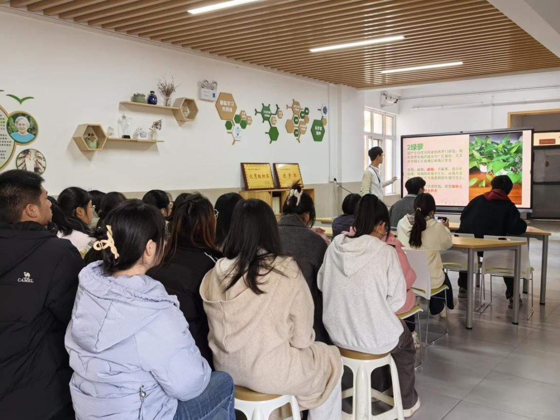 活动伊始,工作人员带领同学们学习了不同植物的生长习性和养护要点,为同学们认养绿植提供了知识储备。现场还特别设置了关于植物诗句或名言的趣味问答环节,大大增加了活动的趣味性与互动性。