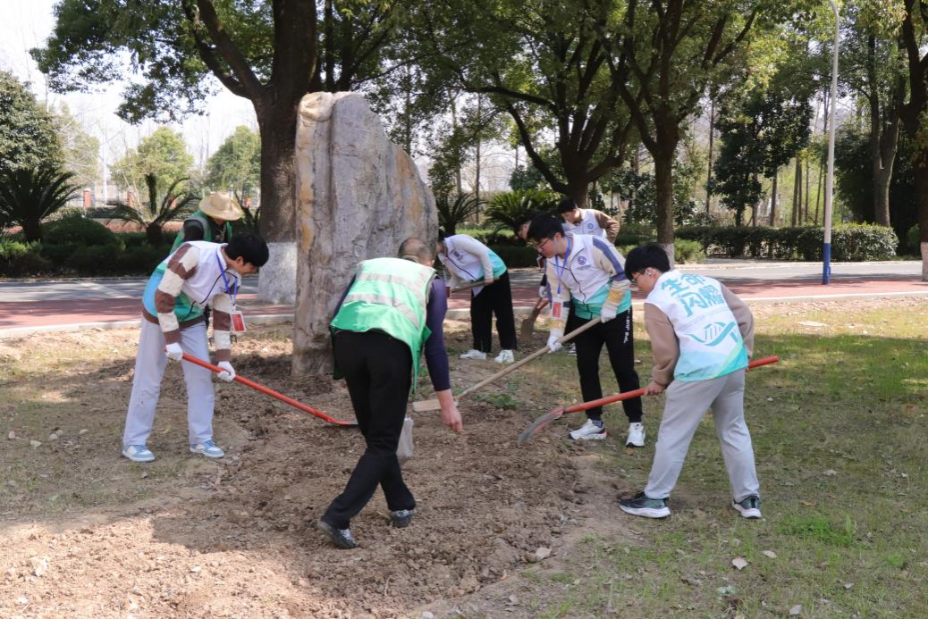 下午2时,活动在嘹亮的环保倡议宣誓中拉开帷幕。植树不仅是美化环境的具体行动,更是青年学子感悟劳动价值、厚植家国情怀的生动课堂。活动以植树为契机,引导青年学子将绿色发展理念融入学习生活,争做生态文明建设的实践者、推动者。