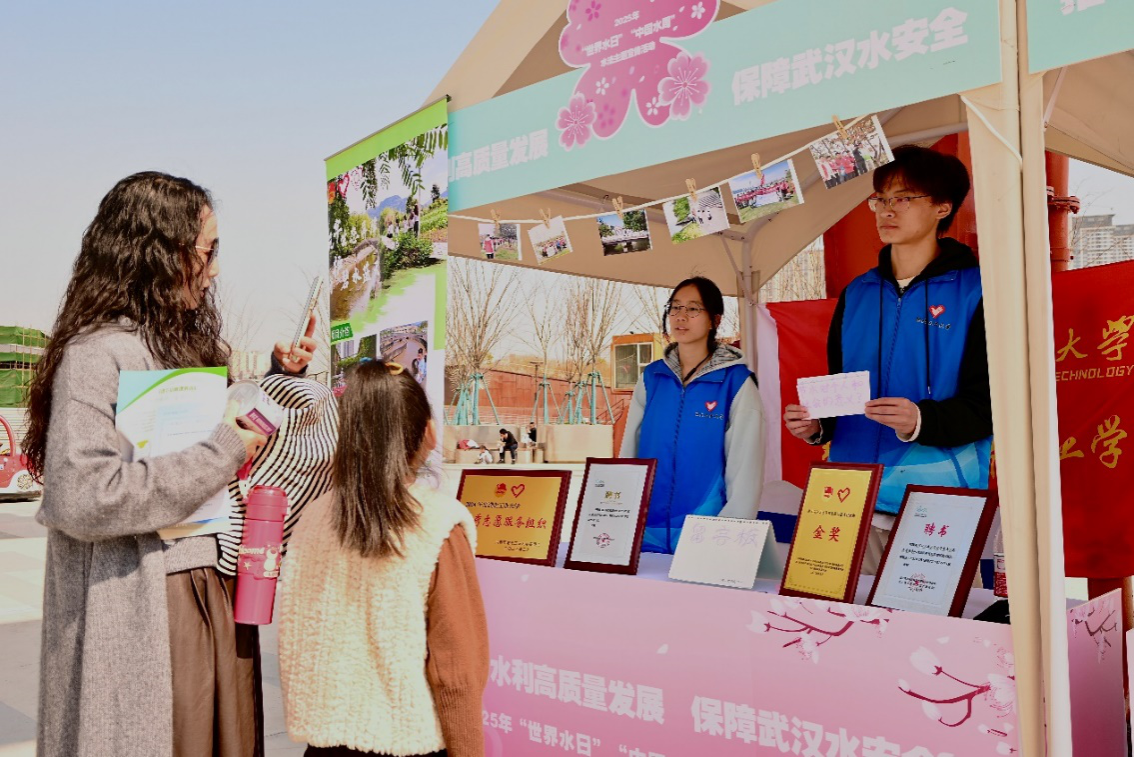 “世界水日”当天,受武汉市水务局、武汉市爱我百湖志愿者协会邀请,蒲公英志愿服务队在汉阳江滩开展摆点宣传,参与武汉市2025年“世界水日”、“中国水周”水法主题教育宣传活动,推动水利高质量发展,保障武汉水安全。摆点现场通过展板、照片等形式,介绍了蒲公英志愿服务队在武汉市水环境保护、生态环保领域的品牌特色工作。志愿者们通过生动讲解、互动问答、趣味游戏等形式,向市民科普水资源保护等相关法律法规知识,市民们争相回答节水护水趣味知识题,在领取定制环保袋、节水定制徽章等奖品和拍照打卡等互动过程中增强水资源保护意识。