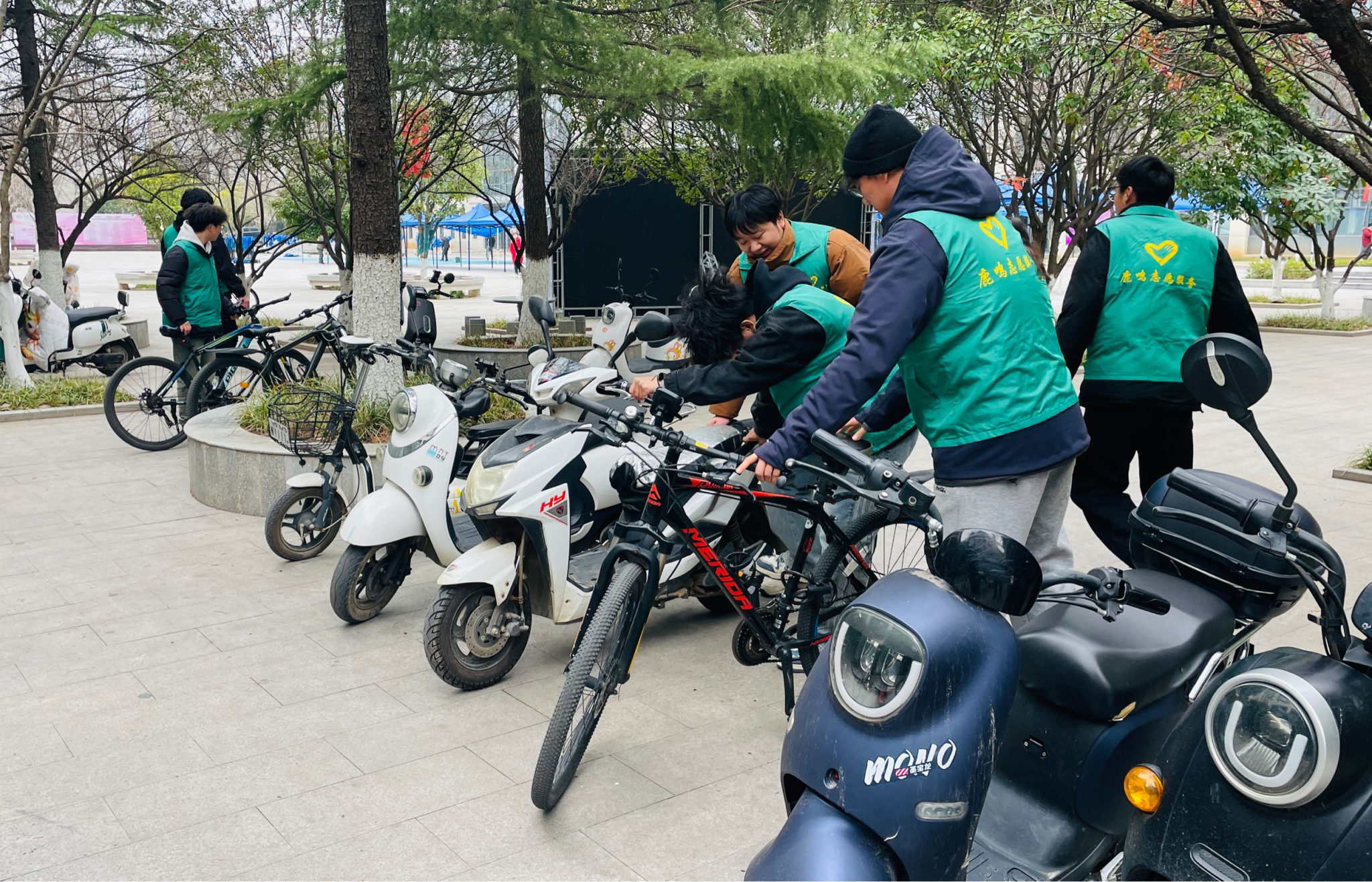 在校园内,文明停车、健康生活、环境治理成为活动的关键词。土木工程系的鹿鸣志愿服务队和管理系的小桔灯志愿服务队,分别对教学区、宿舍区道路周边乱停乱放的电动自行车进行了规范停放,用实际行动引导同学们自觉遵守校园交通规则,共同营造了一个整洁、有序的校园环境;外国语系的晨曦志愿服务队来到巡司河湖工大农贸集市河段,开展环境清理活动,用实际行动守护河道生态;艺术设计系30名青年志愿者在赵侠老师、朱姝老师指导下,通过动手栽培花箱,为学院艺术楼前的空地开启了“美颜”模式;生化工程系在校园招聘会现场设置简历照免费拍摄服务,让学生以自信、得体的形象呈现在求职简历上。