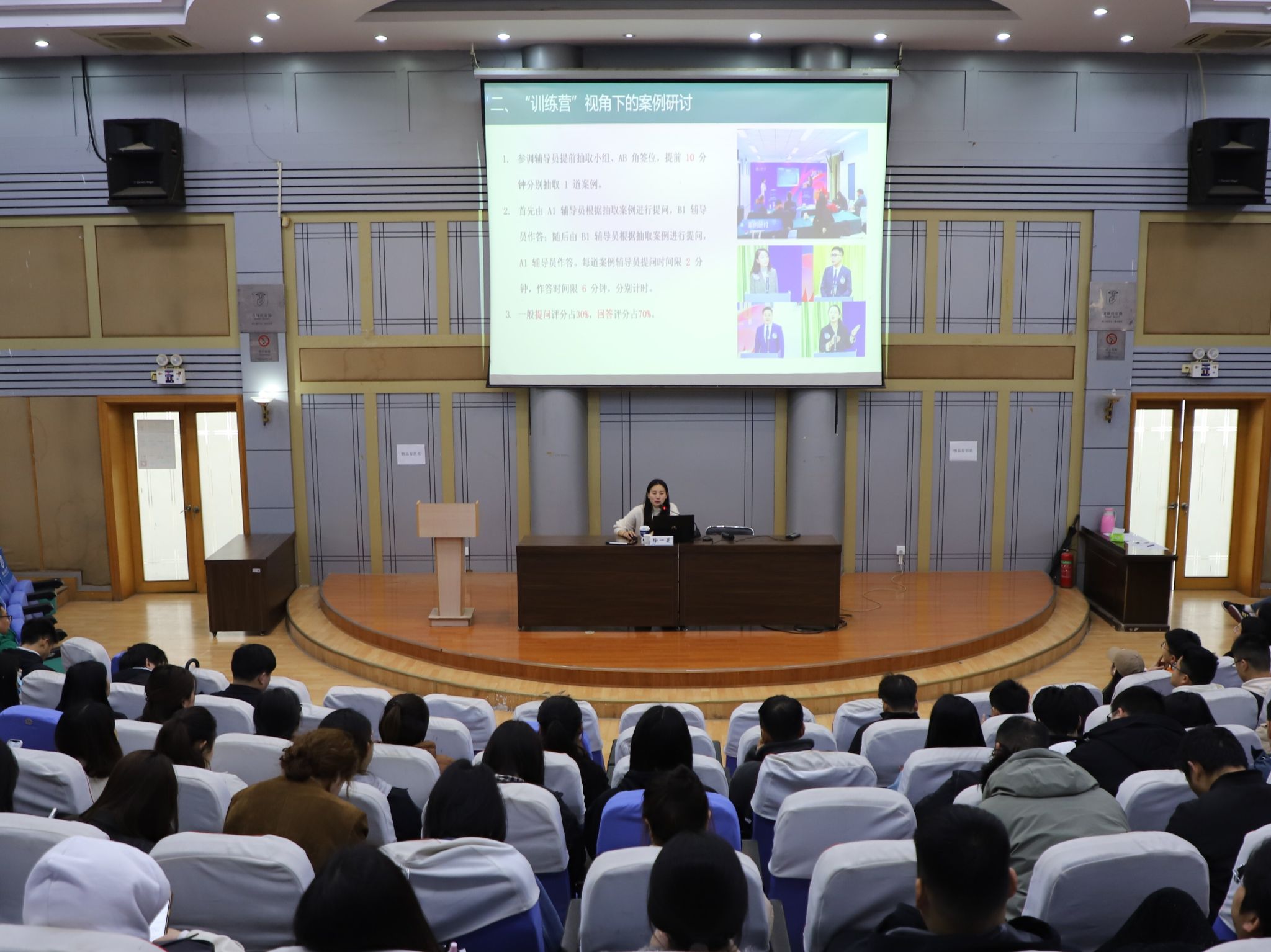 徐一菱老师以《解码案例研讨与谈心谈话的实战技巧——以全国高校辅导员素质能力提升骨干训练营为例》为题,结合自身参赛经历和多年学生工作经验,从“国赛赛制解析”“案例研讨的解题策略”和“谈心谈话的实战技巧”三个维度展开深入讲解。报告中,徐一菱通过真实案例还原、情景模拟演示等方式,生动展示了辅导员在突发事件处理、心理危机干预、学业困难帮扶等工作中的专业技巧,其提出的“有礼有节”“有声有色”“以水济水”等实用工作法引发了在场辅导员的强烈共鸣。在互动交流环节,学校辅导员就“共情方法在谈话中的具体应用”等问题展开讨论。