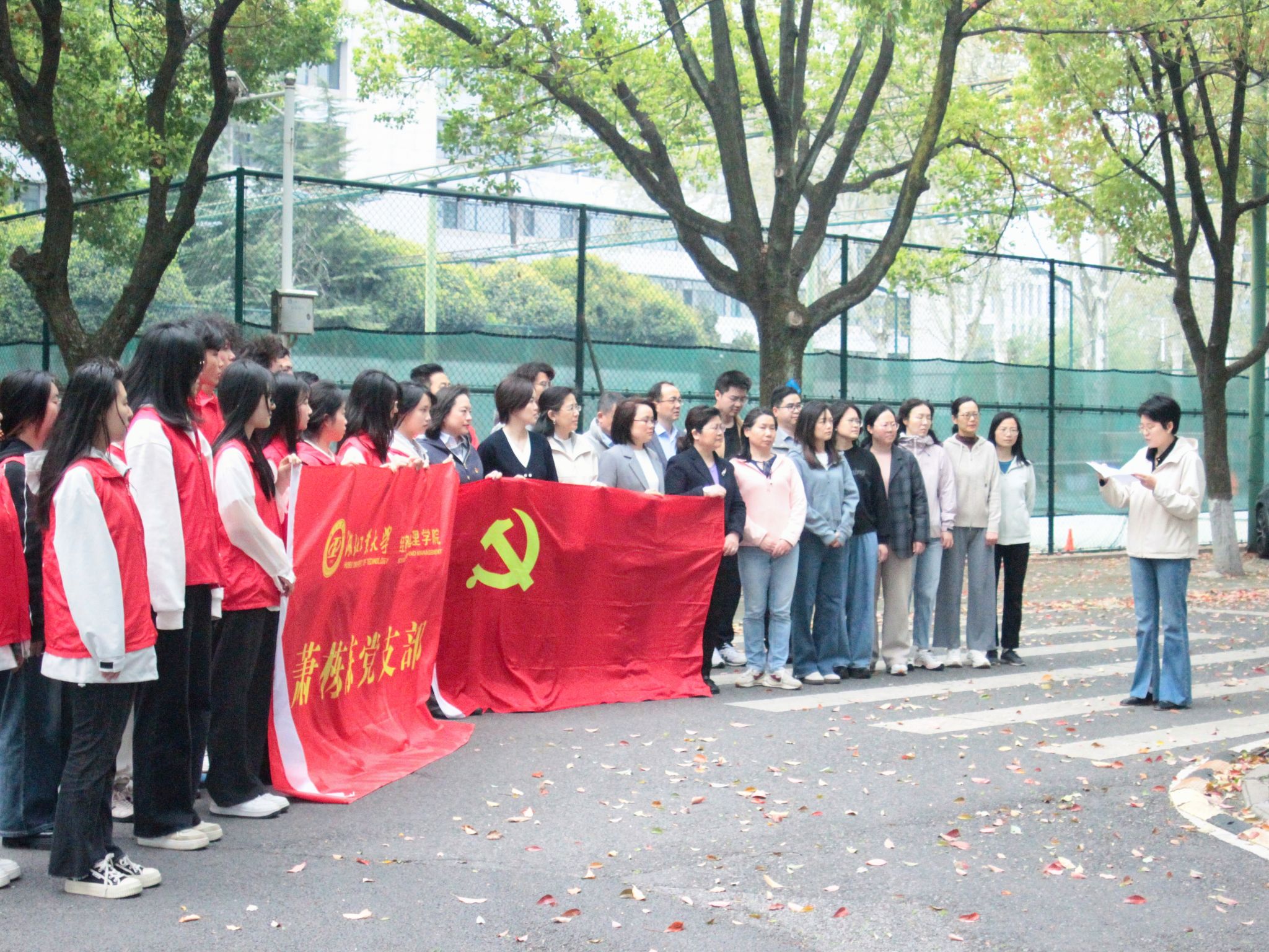 上午10时,萧栋栋同志雕像前庄严肃穆。学院党委副书记余贞、萧栋栋党支部、萧栋栋青年志愿者协会师生整齐列队,教师代表张磊仔细擦拭雕像,萧栋栋党支部书记张皓动情讲述了1999年萧栋栋在长江边舍身救人的英雄事迹,在场师生无不动容。随后,全体党员面向党旗庄严宣誓。
