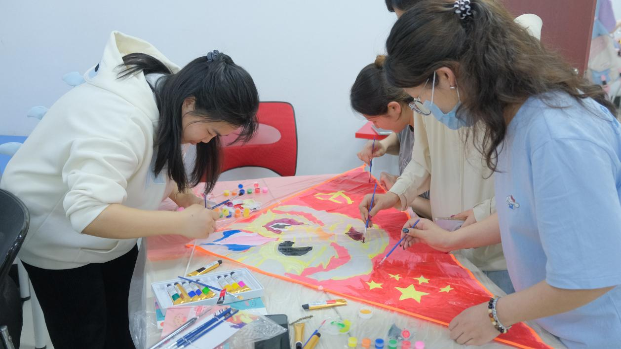 “彩绘心语”区,各参赛队伍齐聚五教创作现场,在三大主题赛道挥毫泼墨:水墨青竹、亭立清莲、威武醒狮、绚烂樱花、治愈彩虹、心灵树洞、风火哪吒等创意元素跃然筝面。各组队员通力协作,将空白素筝化作流动的青春画卷。