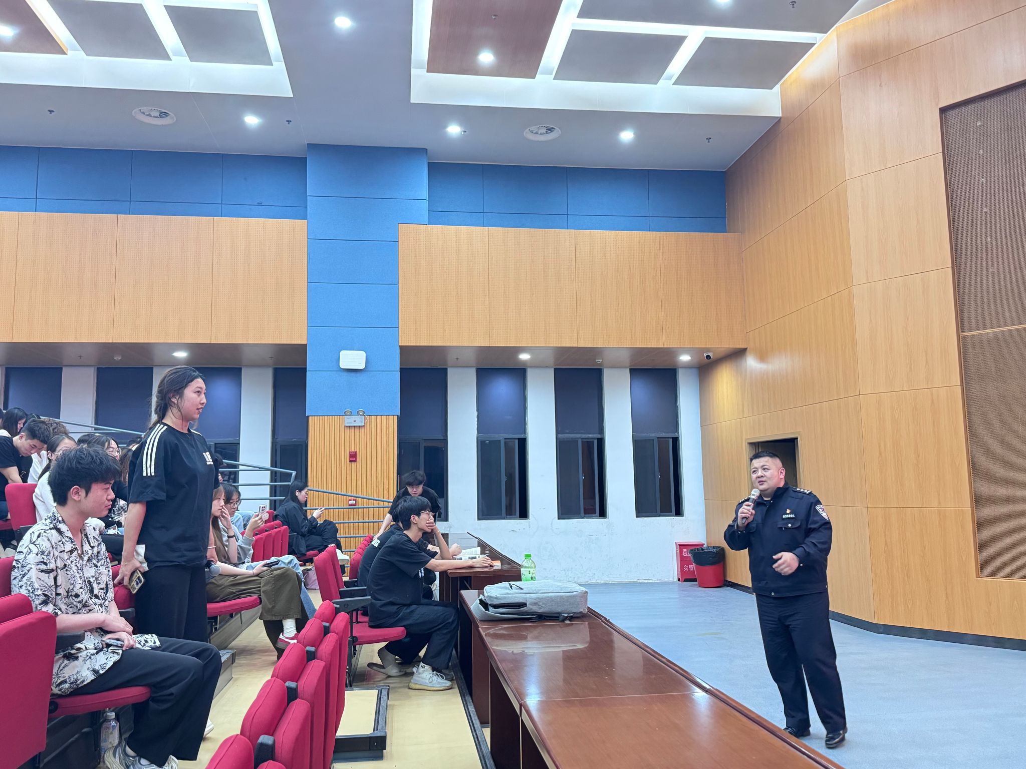 授课过程中,寇警官以“发现可疑人员偷拍军事设施如何应对”“遭遇网络诈骗如何紧急处置”等实际问题为切入点,通过分组讨论、角色扮演等互动形式,激发学生思辨能力,现场气氛热烈。