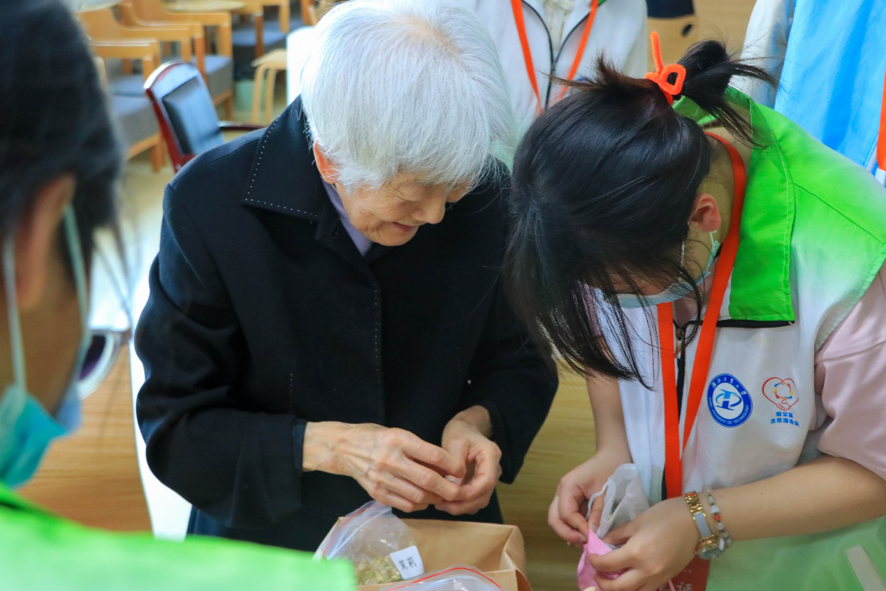 活动伊始,龚照凯、柯欣怡等志愿者们与老人们共同制作传统香囊。在志愿者和爷爷奶奶们围坐桌前挑选艾草、薰衣草等天然香料,亲手缝制出一个个精巧的香囊。馥郁的草药香萦绕指尖,欢声笑语中,大家一起感受传统文化的魅力,更在互动中拉近了老人们与年轻人的距离。