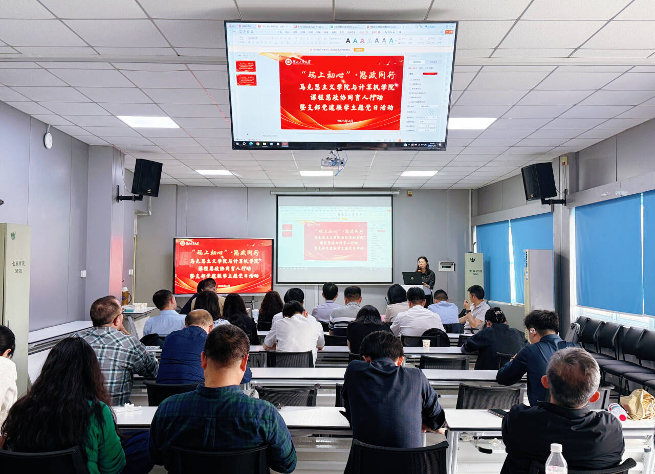 4月17日,马克思主义学院与计算机学院“‘码上初心’·思政同行”课程思政协同育人行动暨支部党建联学主题党日活动在科技楼410会议室举行。活动由计算机学院党委书记齐萍主持,马克思主义学院党委书记陈燕、副院长石裕东、第四教师党支部党员教师,计算机学院领导班子成员、党委理论学习中心组成员、软件工程系教师党支部党员教师共50余人参加活动。