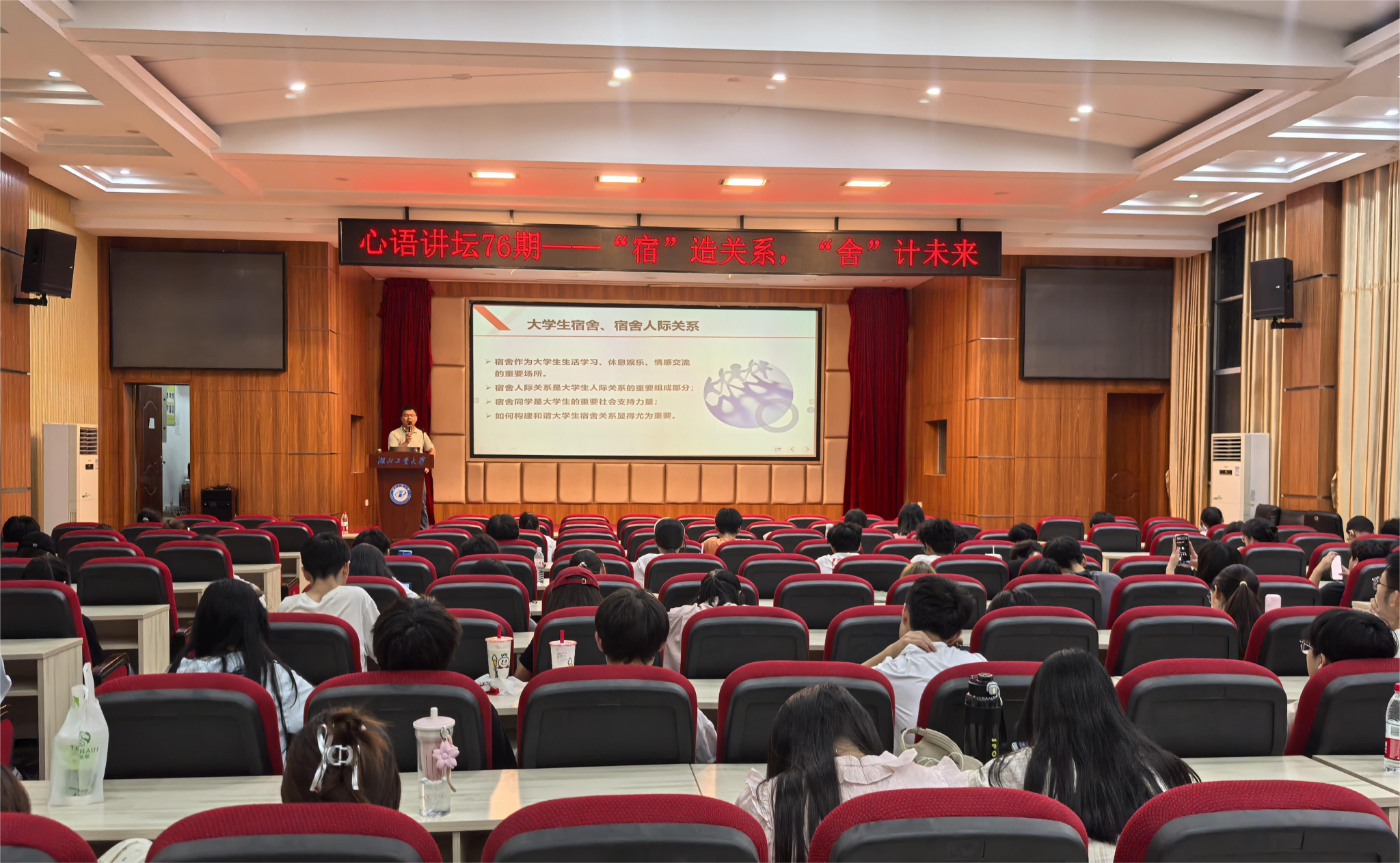 活动期间特邀湖北大学哲学院教授、博导徐瑾教授给学生们开展了题为“《道德经》与心理健康”的心语讲坛讲座,引导大学生们将古老的东方智慧融入现代生活,以提升心理韧性与整体幸福感;还邀请了中南财经政法大学心理中心资深咨询师余金聪副教授作题为“宿舍人际关系处理的艺术”的讲座,与来自各学院的200余名学生互动探讨宿舍关系,助力宿舍改造搬迁。心理健康教育与咨询中心袁圆副教授主持,共计近500人参加。