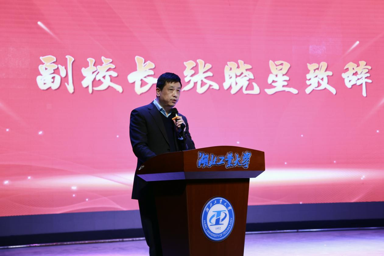 晚会开始前,张晓星登台致辞。他强调,湖北工业大学既是锻造大国工匠、培育行业精英的育人沃土,更是厚植家国情怀、涵养使命担当的精神阵地。站在新时代的新起点上,学校对学子们有着深切的期盼,希望大家循着“感动、感恩、感谢”三束精神之光,在成长道路上笃定前行。针对“感动”,张他希望同学们将校园生活中收获的点滴感动,转化为温暖他人的实际行动,始终保持“眼里有光、心中有爱”的赤诚,做有温度的湖工大人;谈及“感恩”,他勉励学子们把对祖国的感恩之情,凝聚为攻坚克难的强大斗志,在新能源、智能制造等关键领域勇攀技术高峰,以实际行动践行“为国担当、为国奉献”的誓言;围绕“感谢”,倡导大家将对父母的感谢之心,内化为修身立德的自觉追求,脚踏实地钻研学业、锤炼本领,用优异成绩回报亲情,做到“不负韶华、不负期盼”。