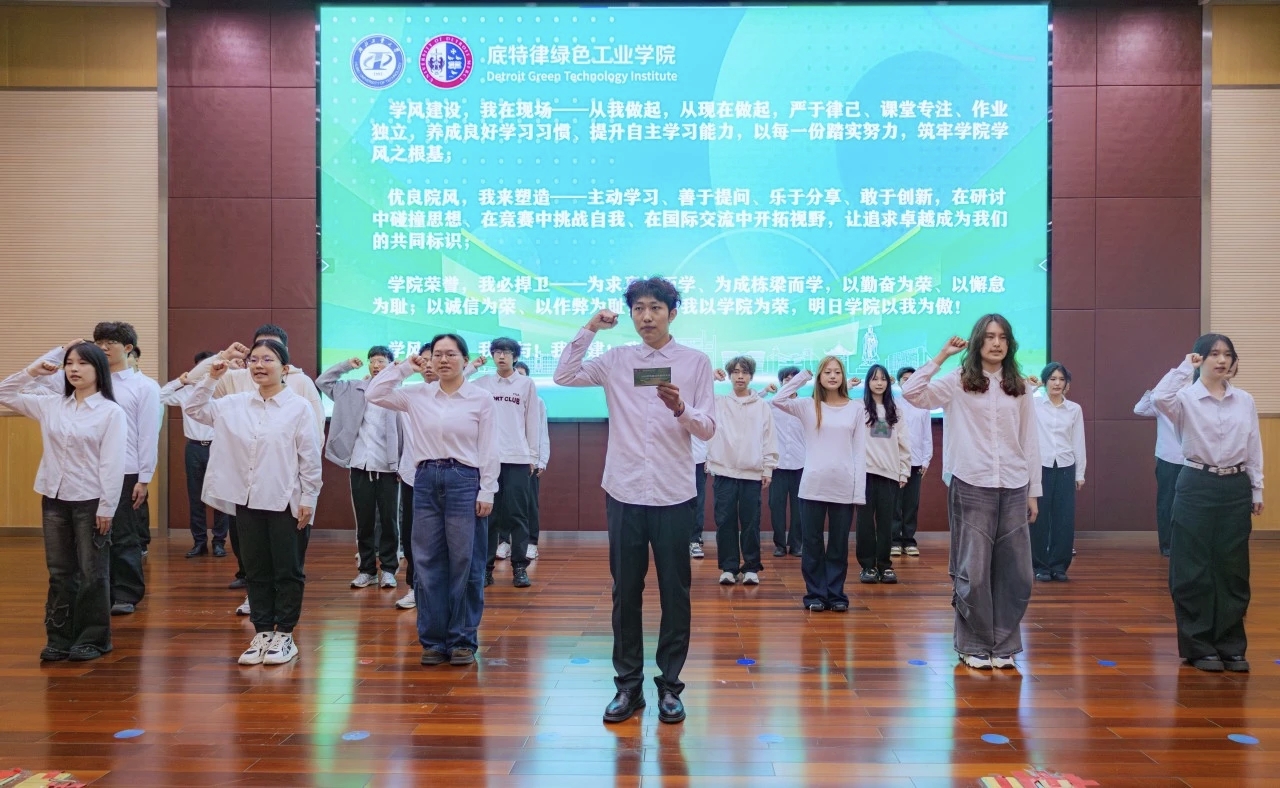 3月20日中午,底特律绿色工业学院在图书馆报告厅举行2026学风建设年启动仪式。校学工部、教务处相关负责人,学院领导班子、系主任、辅导员及师生代表参加活动。仪式由院党委副书记刘涛主持。
