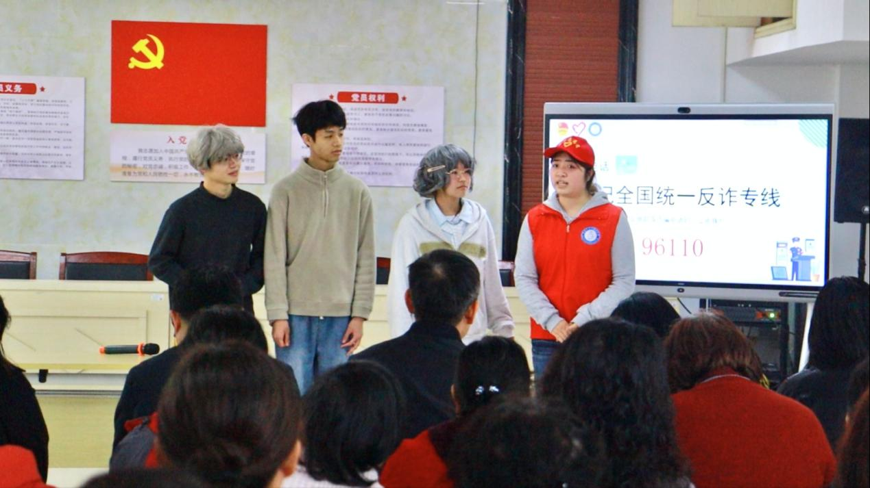 活动现场,志愿者将AI反诈知识编排成《守护养老钱》情景剧,以生动鲜活的形式向群众普及反诈知识。该剧以医保诈骗为主线,呈现了诈骗分子利用AI换脸技术,先冒充医保办工作人员套取老人信息,再假冒民警以涉案为由,诱骗转账至所谓安全账户的连环骗局。直观生动的演绎,赢得现场阵阵掌声。