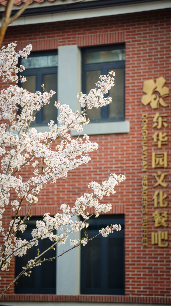 华中科技大学校园内的樱花。 左盈、许铭 摄