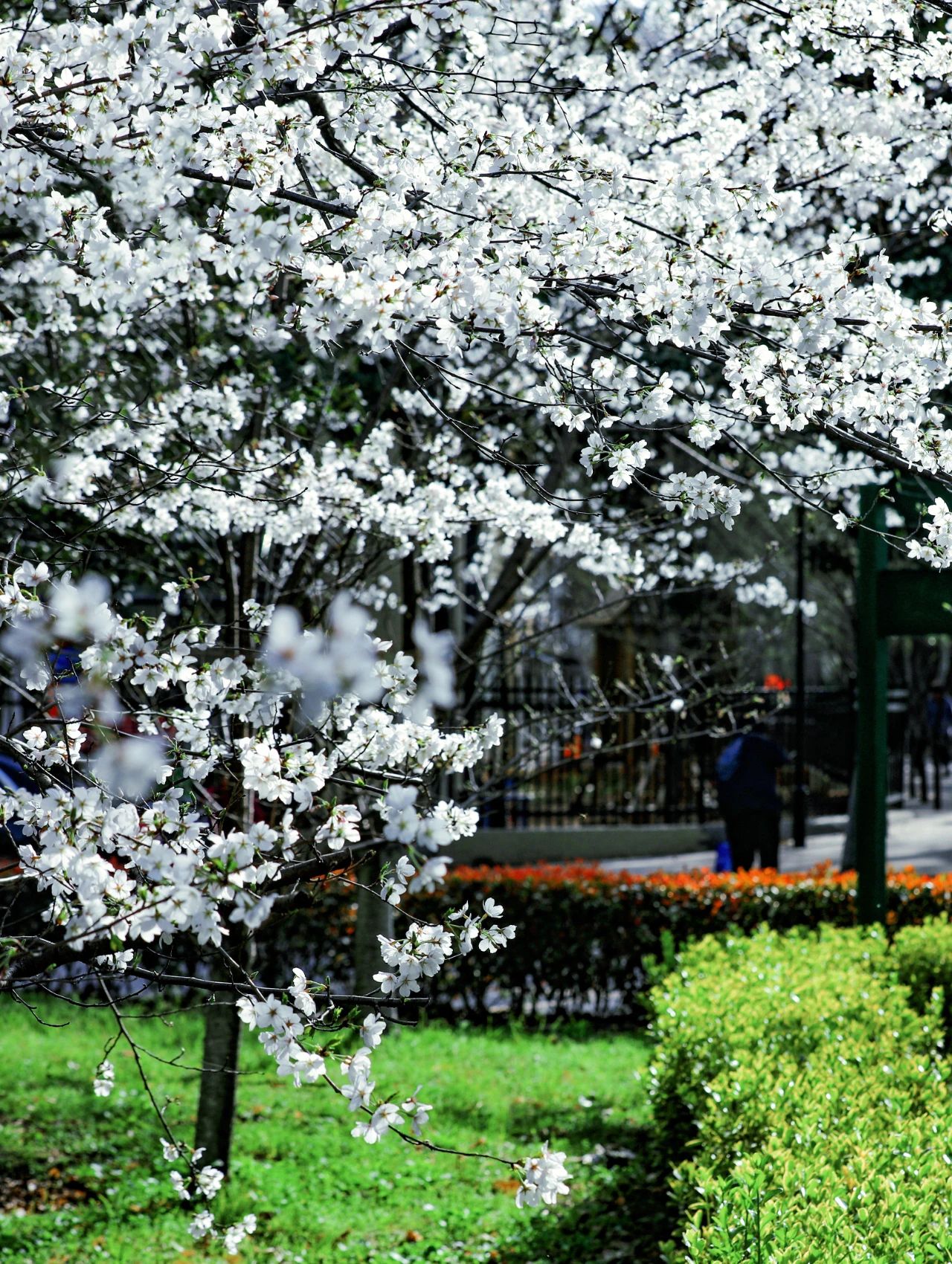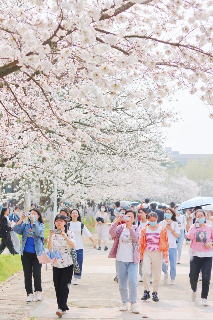 武汉工程大学:主要分布在第四教学楼附近。微风轻拂枝头的樱花,满树的洁白微微震颤,仿佛生命之间的共鸣,在枝丫间回响。花前向来不乏赏花的人,花开有期,留在相机里的瞬间却永恒。社会公众进入武汉工程大学可通过保卫处公众号,进行访客登录预约。