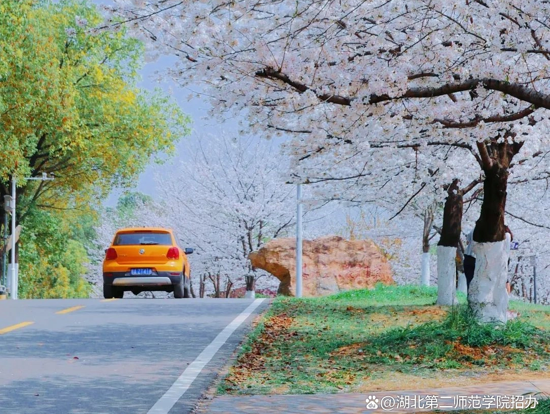 湖北第二师范学院:樱花位于学校的东北侧,山坡上种植着多种樱花树,在一定的季节,可以观赏到樱花依次开放。图书馆附近及十号楼旁边的也有樱花树,纯白色的樱花瓣,满园春色,是感受校园氛围的理想选择。不过该校樱花园附近正在进行研究生公寓建设,经常有工程车辆出入,安全隐患比较大,今年暂不对外开放。