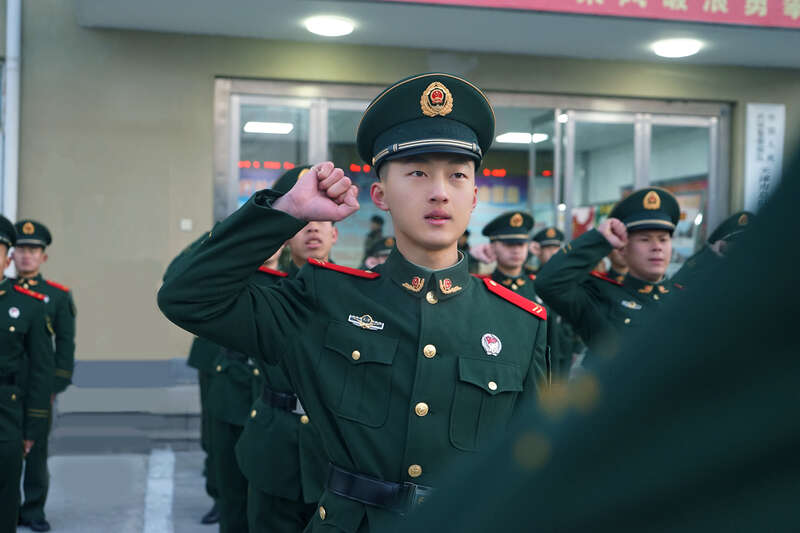 王德功服役期间宣誓活动。(照片为湖北工业大学党委宣传部提供)