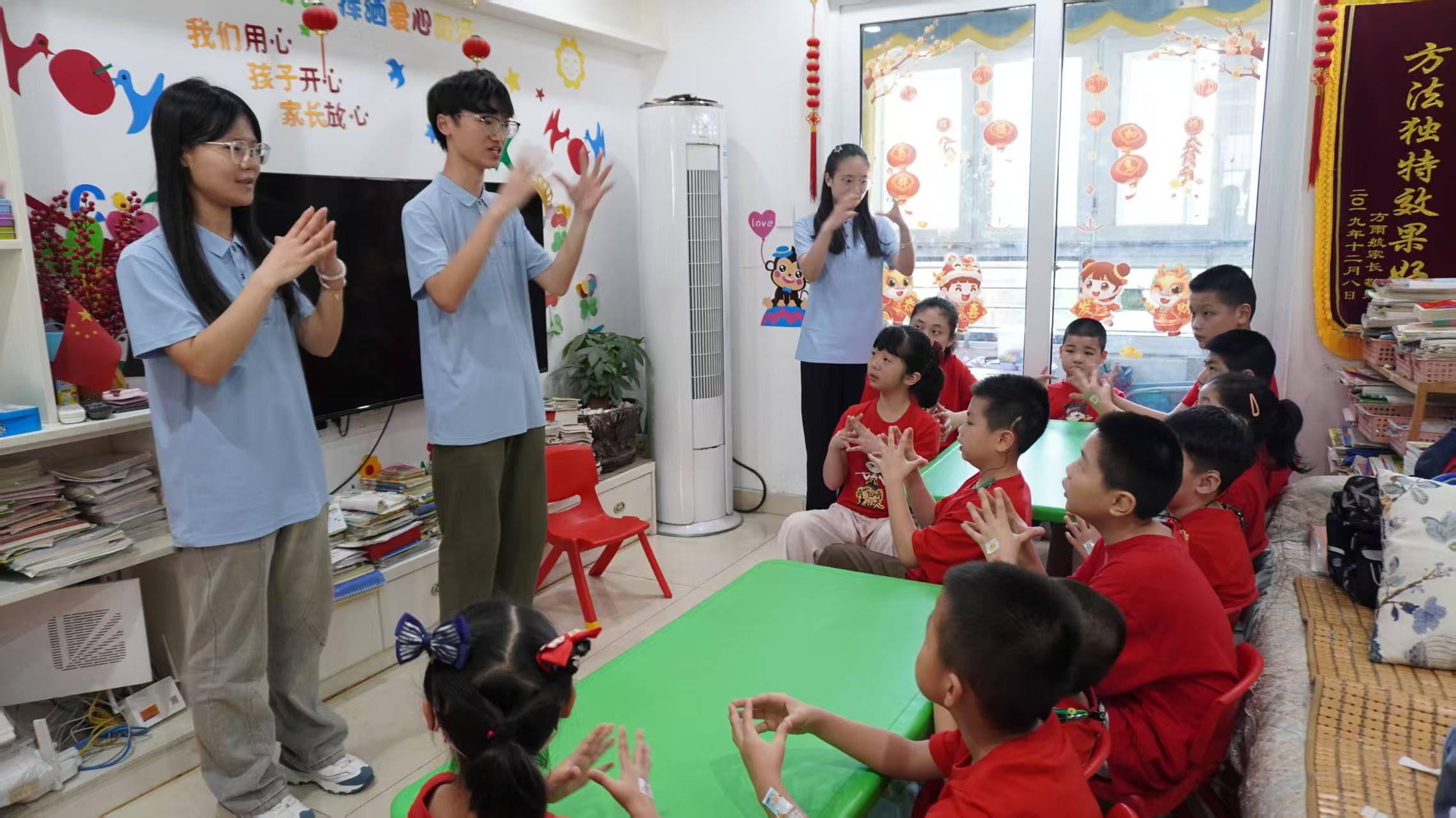队员们还将自创的“大脑保健操”教给孩子们。这套“大脑保健操”针对特定脑区功能设计了12个动作,“数字手指操”锻炼前额叶,“镜像模仿”激活顶叶,“节奏拍打”刺激颞叶。起初有些拘谨的孩子,在队员们的耐心引导下,渐渐放开手脚,活动室里很快充满了欢快的律动。