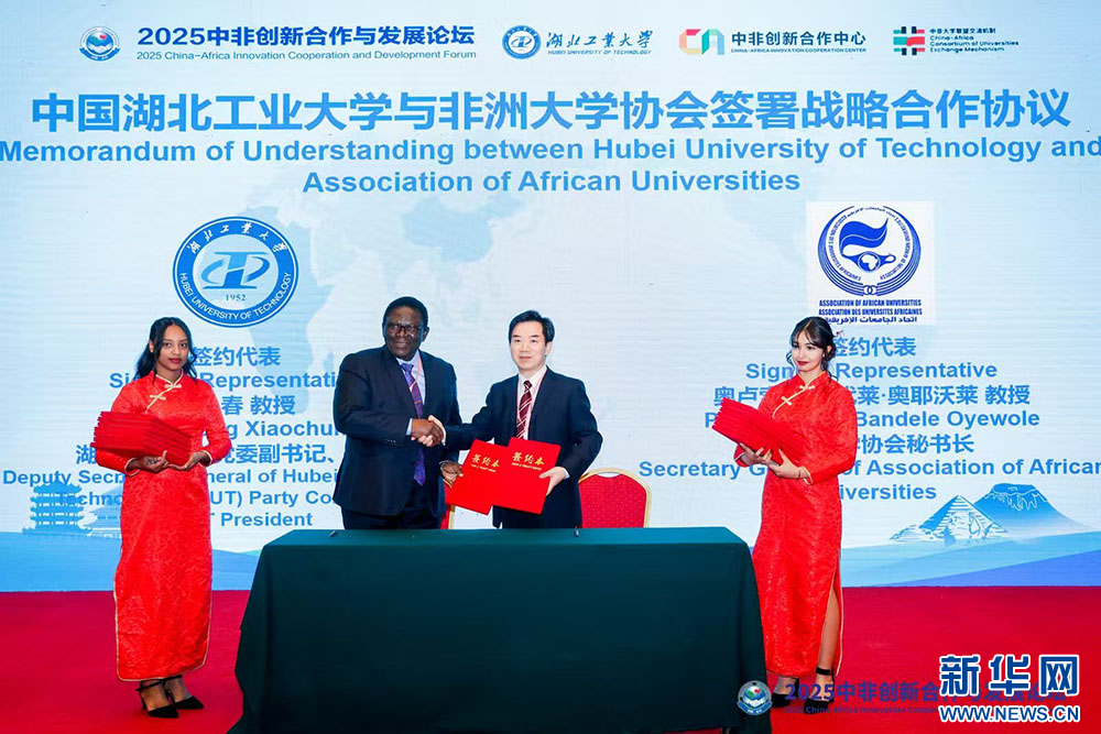 据介绍,目前湖北工业大学已在非洲20多个国家建立70多个合作伙伴关系,签署100多份涵盖人才联合培养、共建联合实验室及中非青年创新创业示范基地等领域的合作协议,在科技、教育、人文、创新创业等方面均取得丰硕成果。其中,湖北工业大学曾炜教授团队已在埃塞俄比亚建成小型光伏储能电站,并捐赠给当地环保局使用;徐保明教授团队利用天然气生产草甘膦农药的技术,在尼日利亚转移落地后新增营收14亿元,填补当地空白。今年10月,湖北工业大学还获批国家级联合实验室“中-埃土木工程绿色建造及智能运维‘一带一路’联合实验室”,正在与亚的斯亚贝巴科技大学共建“中非绿色建造技术创新港”,推动绿色建造技术在非洲基础建设中应用。