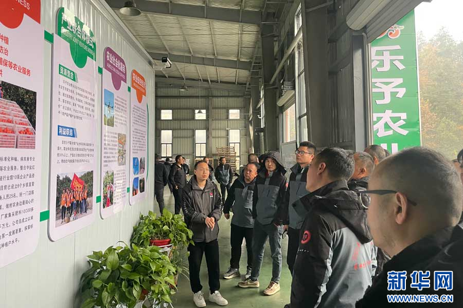 图为学员在华中秭归电商加工产业园实地了解无人机在柑橘植保上的应用