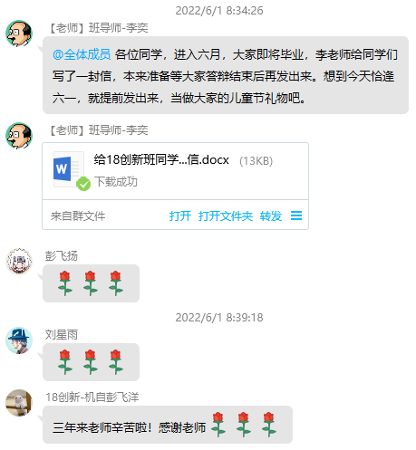 在毕业前夕,李奕还为全体同学写了一份长长的信件,言语中寄托着深深的祝愿与不舍之情。
